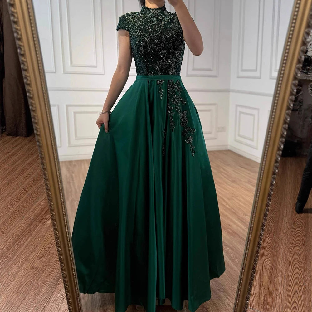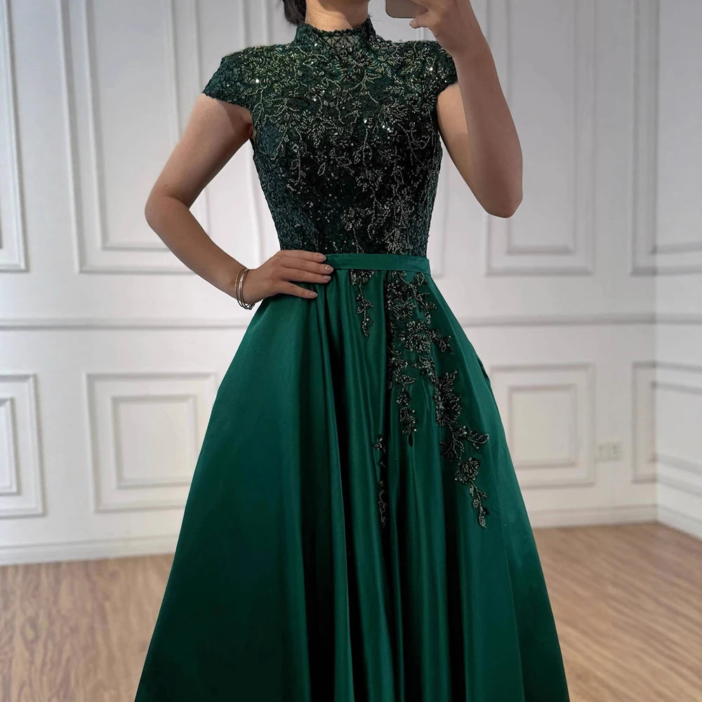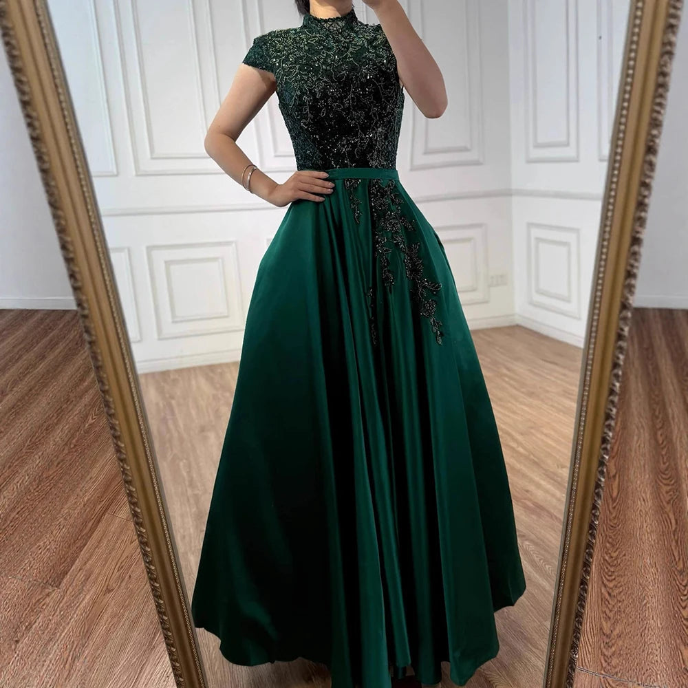 هيل هيل ساتان أخضر ، ثياب سهرة ، 2025 دبي ، ألياف كاب كاب ، تصميم فستان رسمي ، LA70761
