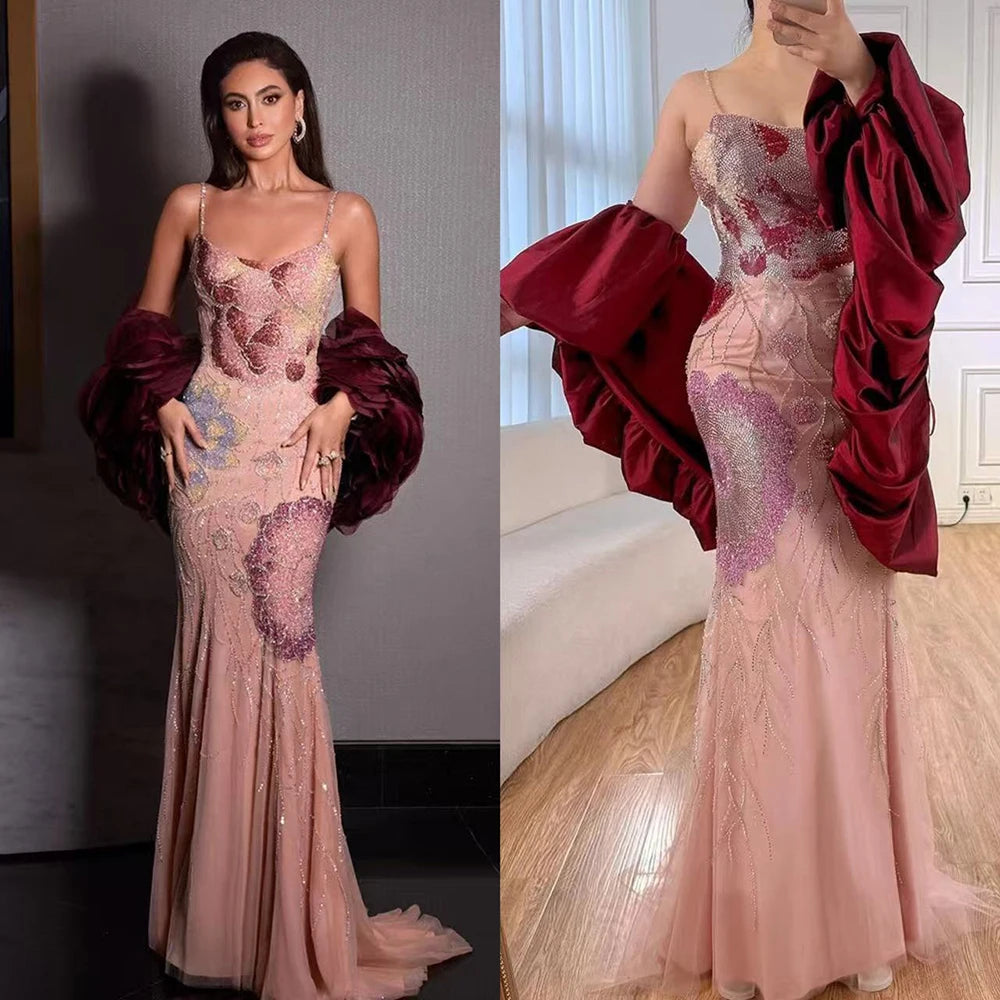 فستان سهرة وردي فاخر مصمم الحالم مع كيب الأكمام LA72850