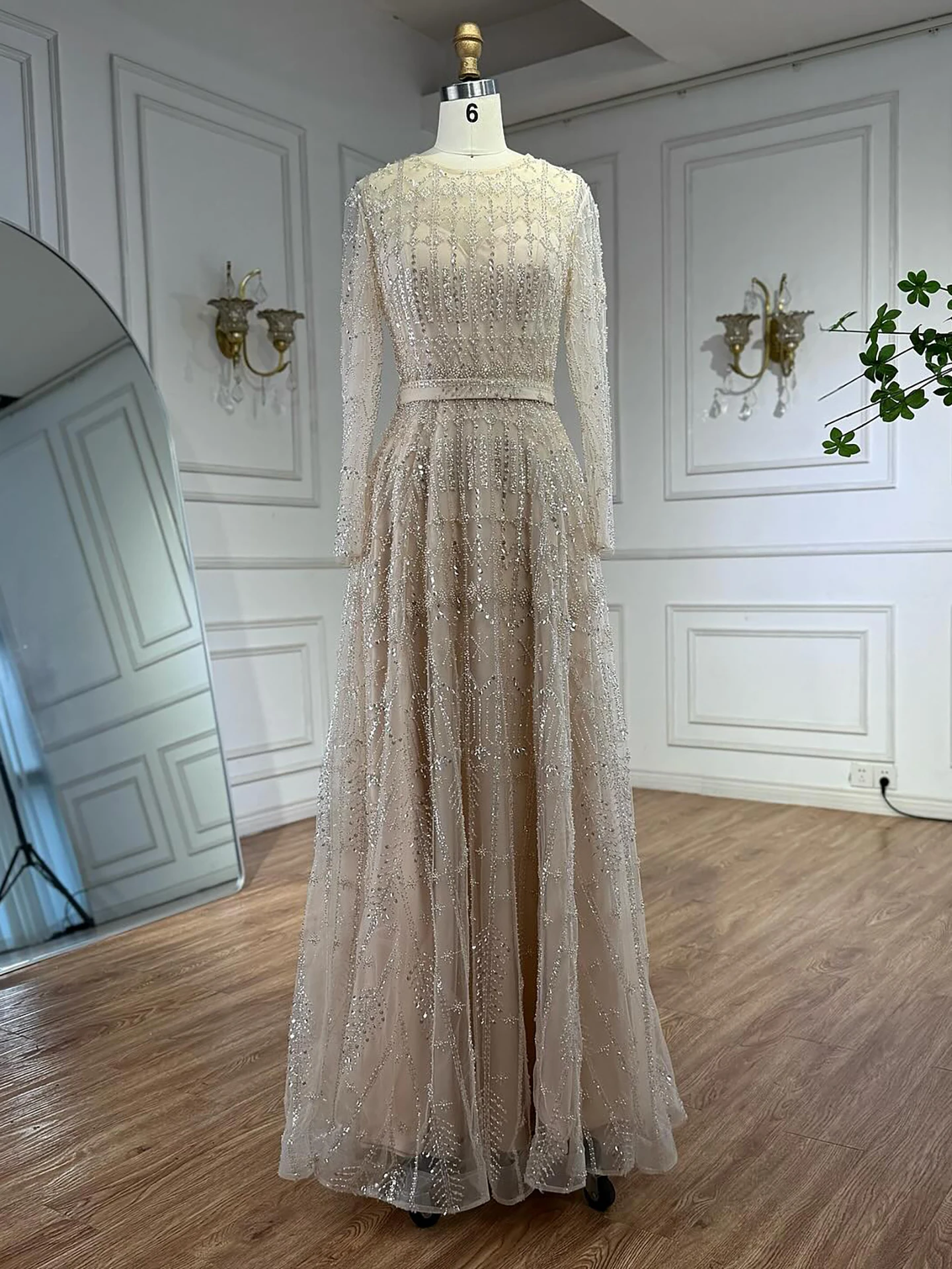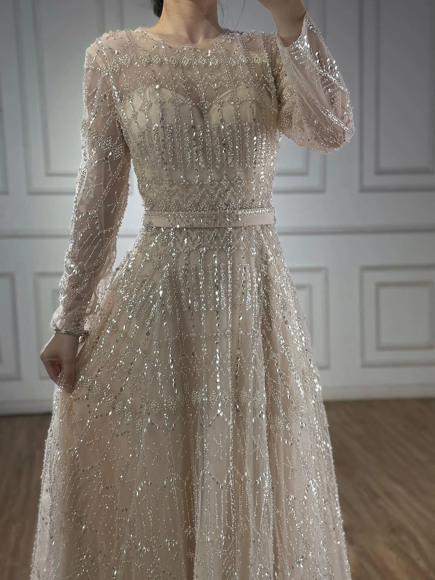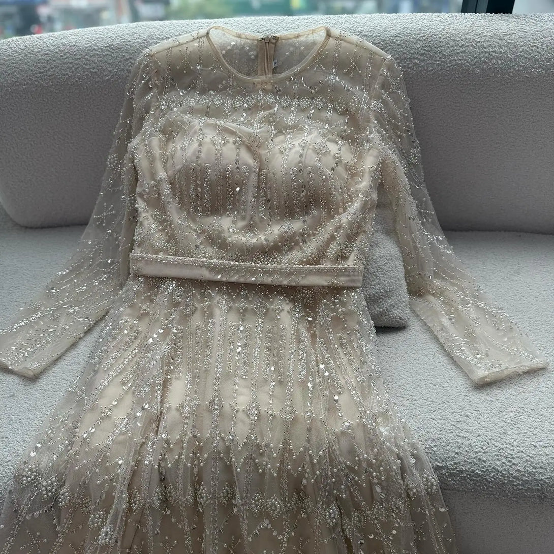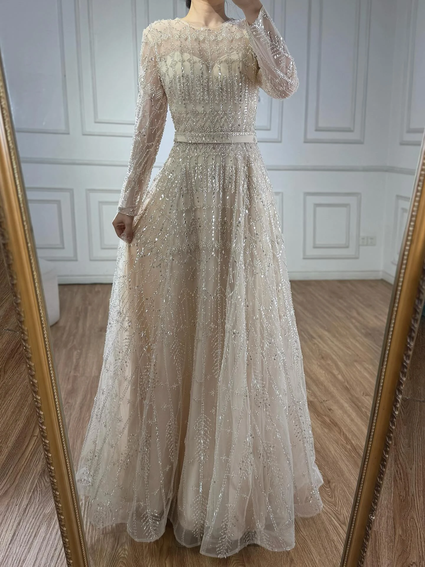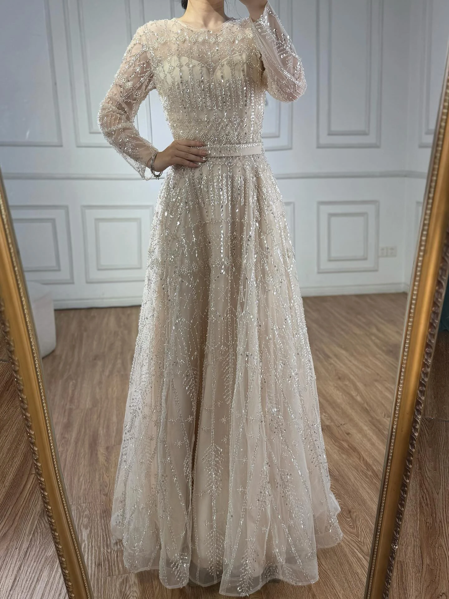 فستان سهرة فاخر من اللؤلؤ والخرز بتصميم A-line LA73174