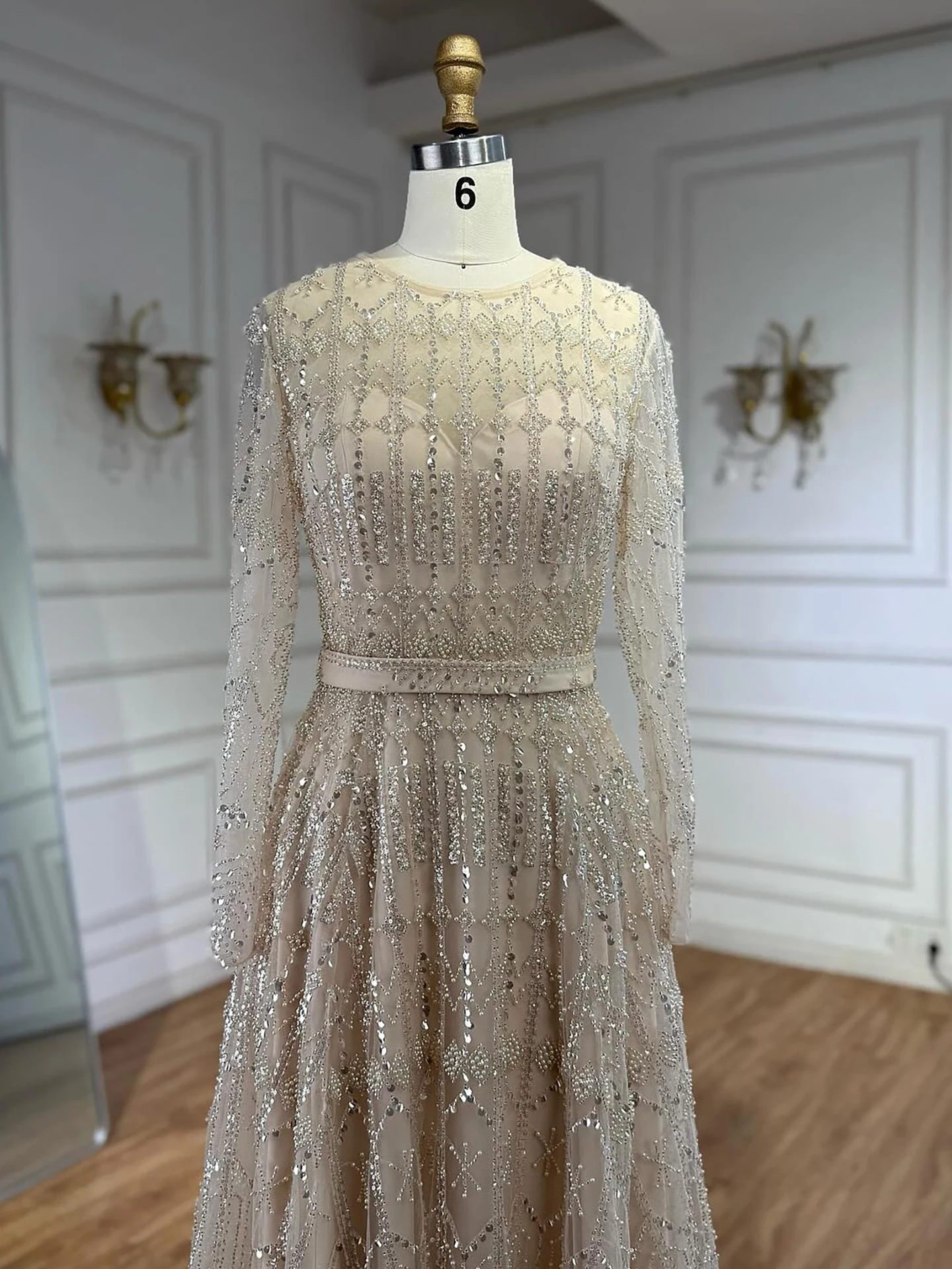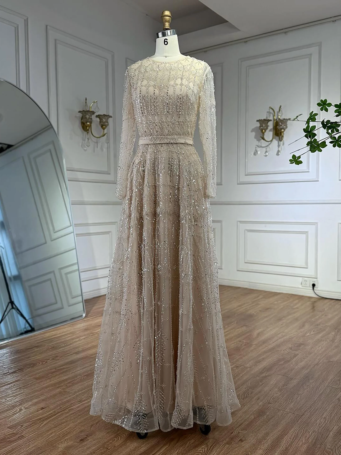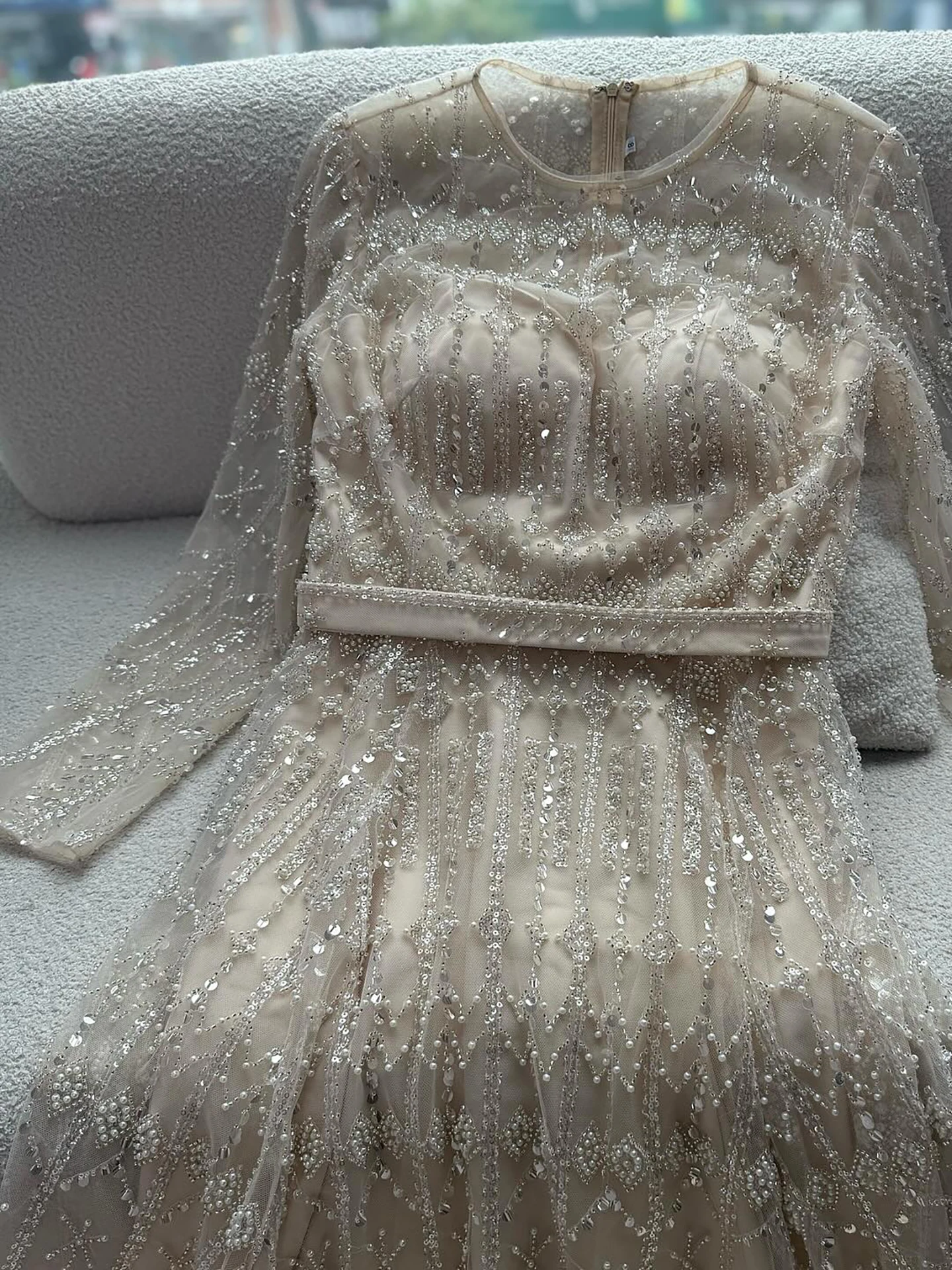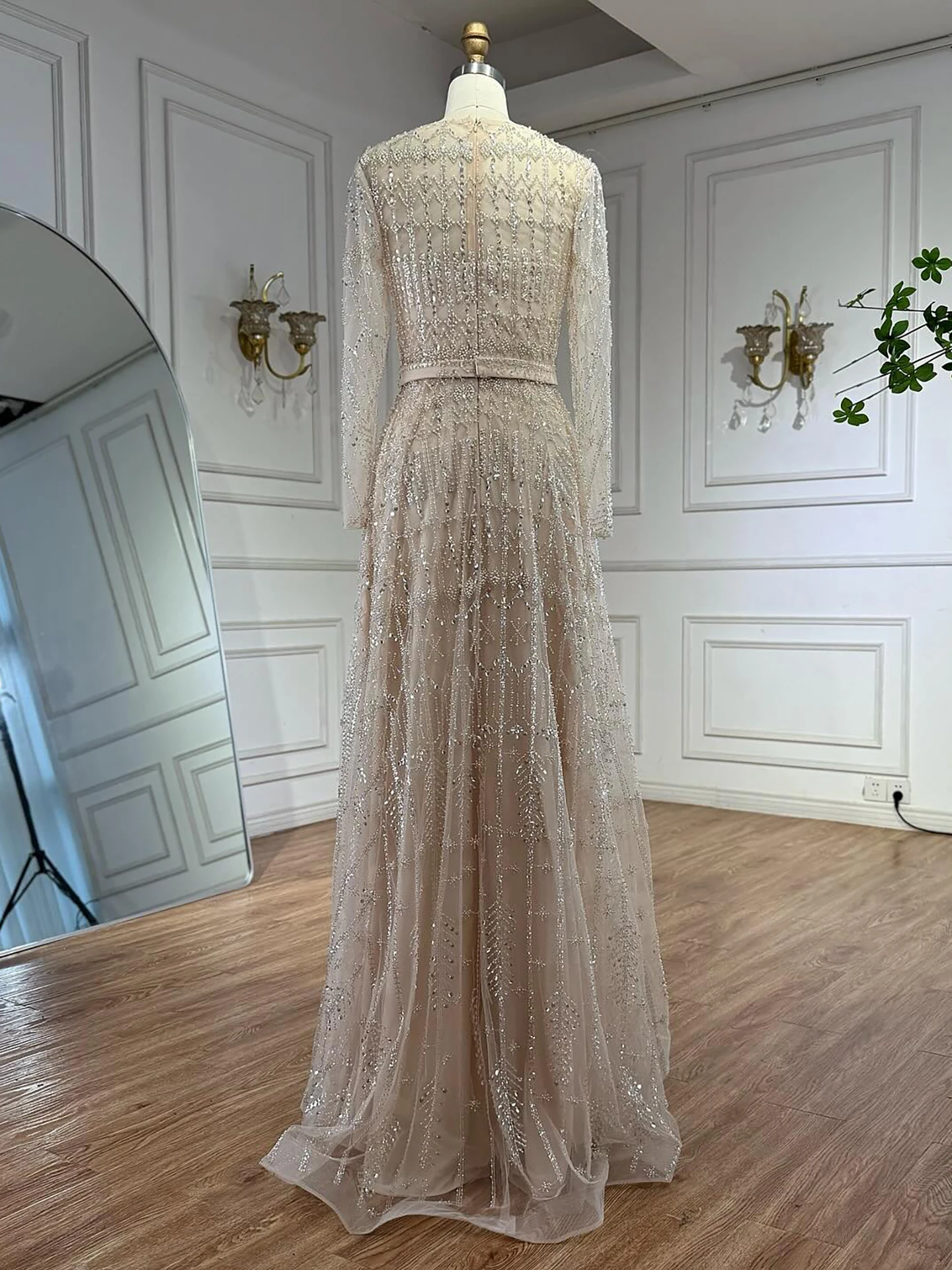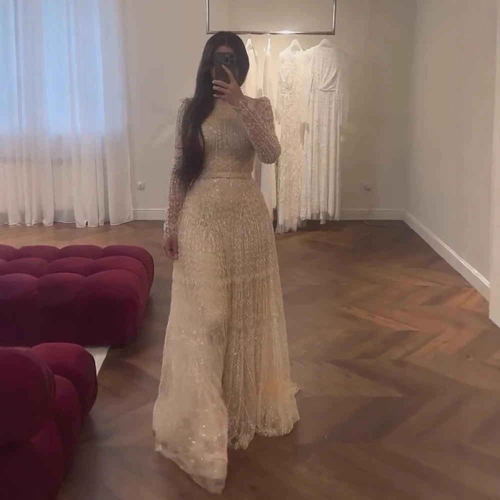 فستان سهرة فاخر من اللؤلؤ والخرز بتصميم A-line LA73174