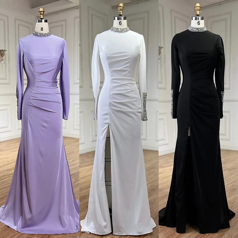 Serene Hill Dubai Arabisch Schwarz Satin Split Meerjungfrau Schwarz Luxus Abendkleider Kleider für Frauen Hochzeit Party 2024 LA72476
