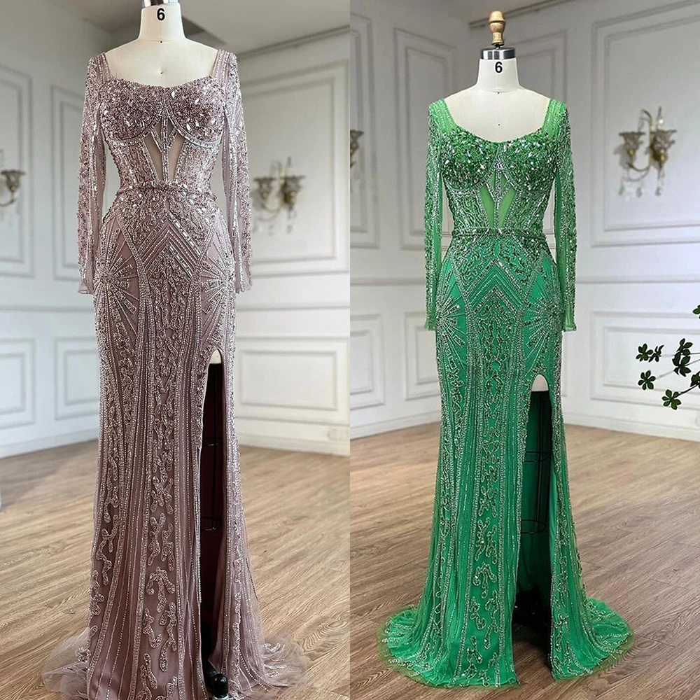 Serene Hill 2024 Frauen Hochzeit Parteien Dubai Arabia Luxus Perlen Abendkleider Kleider Grün Elegante Split Meerjungfrau LA72518