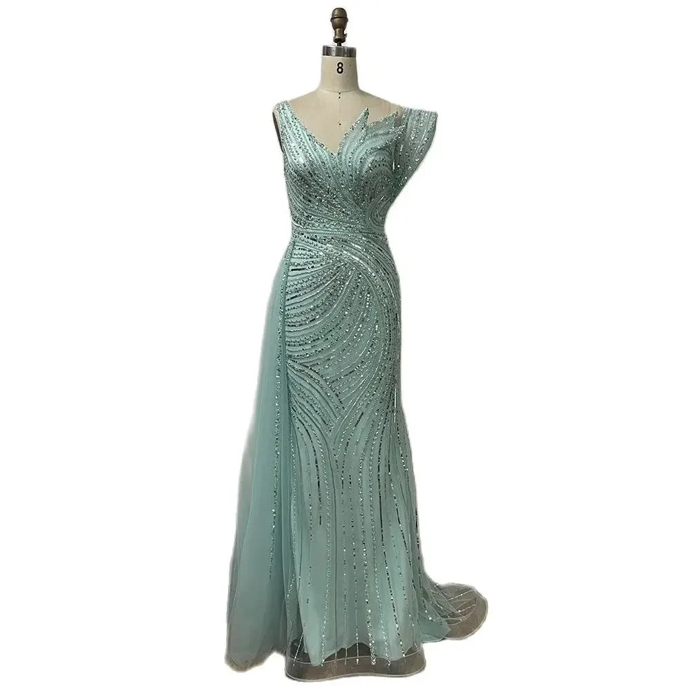 Serene Hill 2024 Arabisch Rosa Meerjungfrau Elegante Ein-Schulter Perlen Lange Abendkleider Kleider für Formelle Anlässe LA72262A