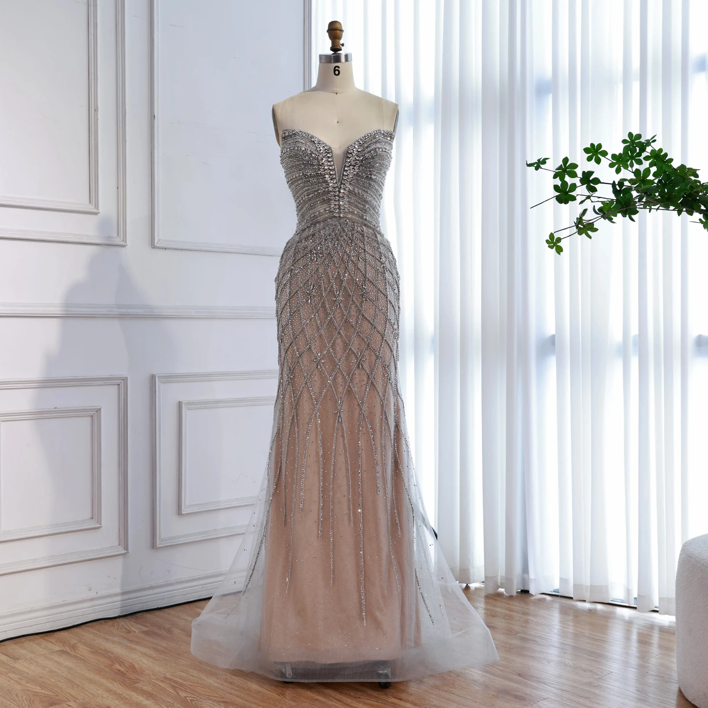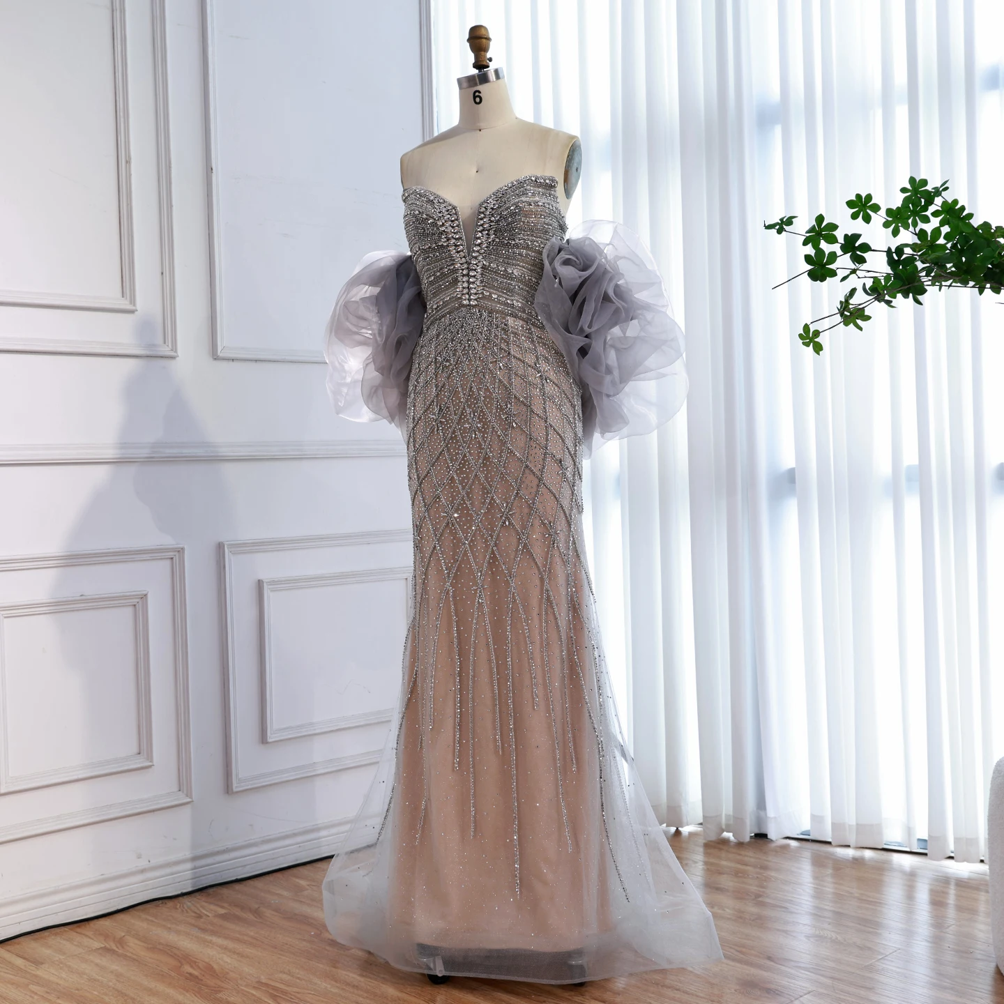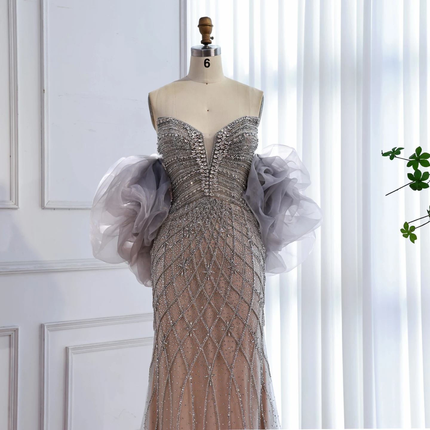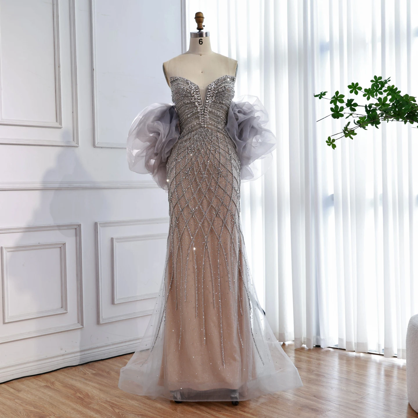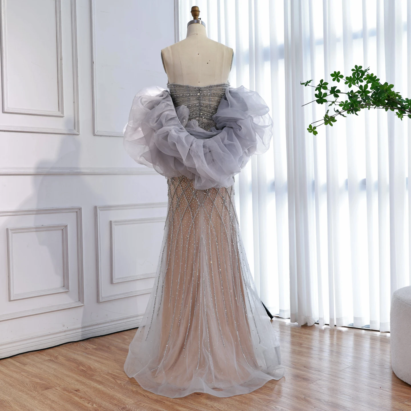 Serene Hill Beaded Gray Diamond Evening Dress With Cape LA73411