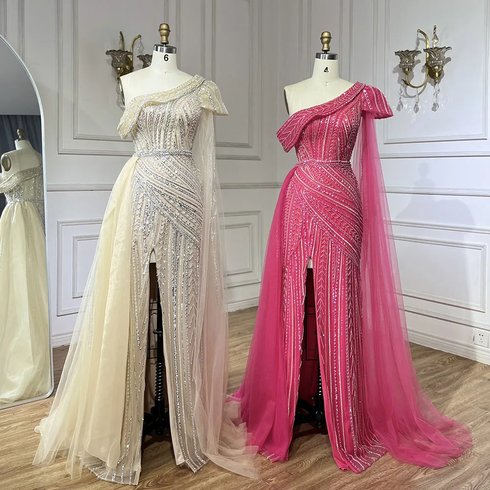 Serene Hill Arabisch Blau Trägerlos Gelb High-Split Meerjungfrau Perlenbesetztes Luxus Abendkleid für Damen | Hochzeitsfeier 2024 LA72600