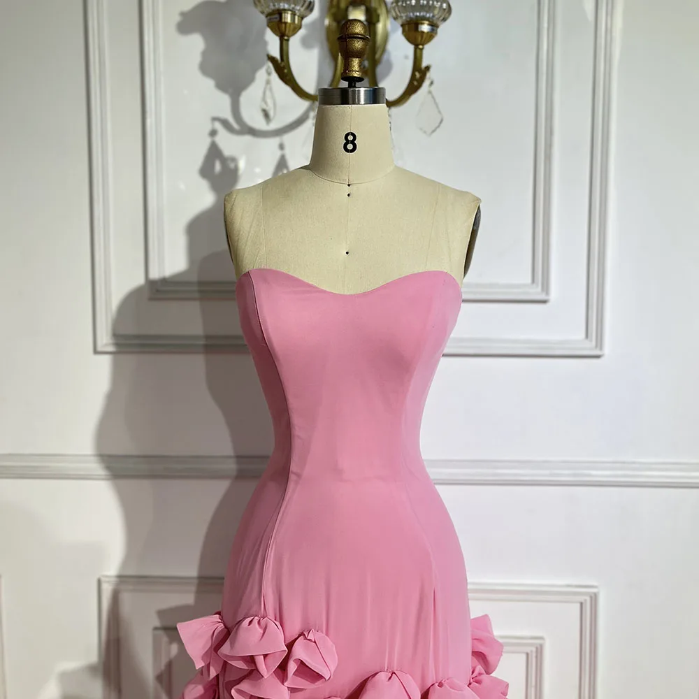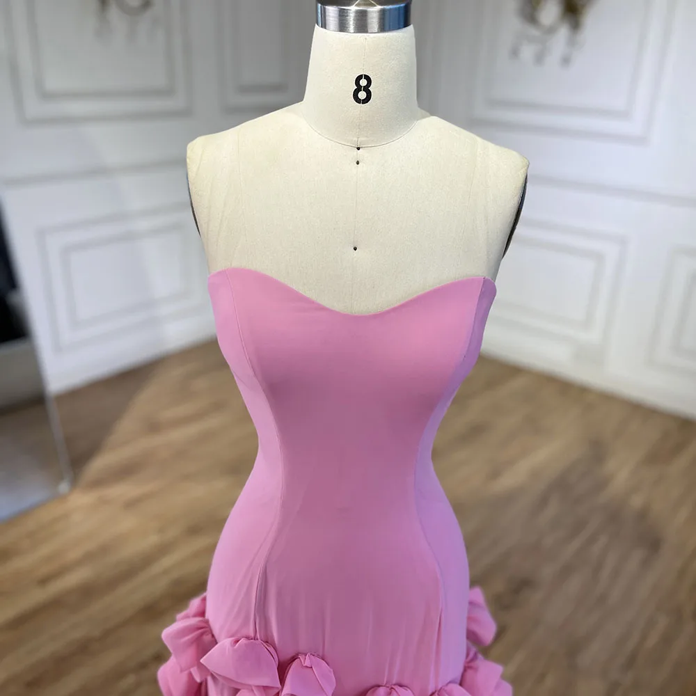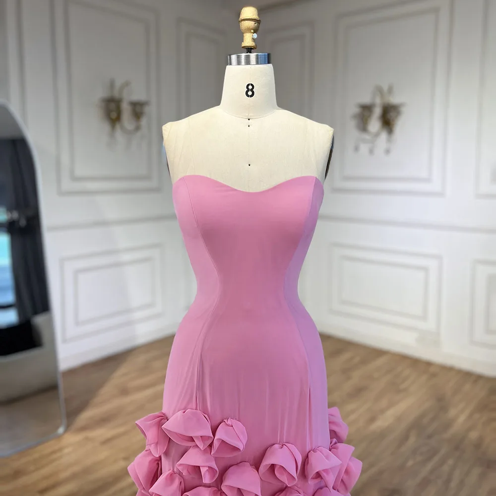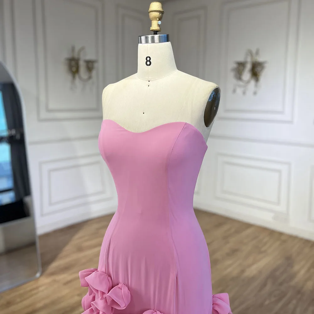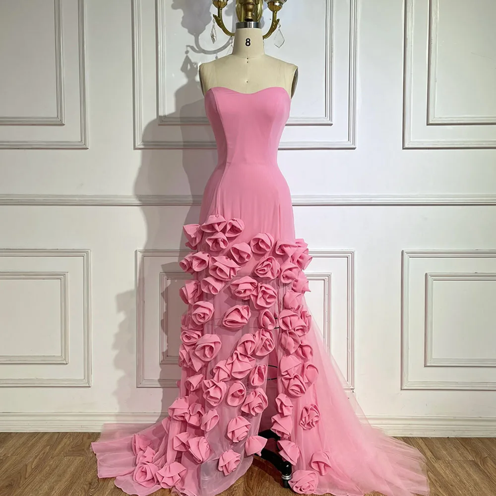 Serene Hill Meerjungfrau Abendkleid für Mädchen Arabisch Rosa 3D Blumen Elegantes schulterfreies Kleid Seitlicher Schlitz Abschlussball Partykleider LA72568