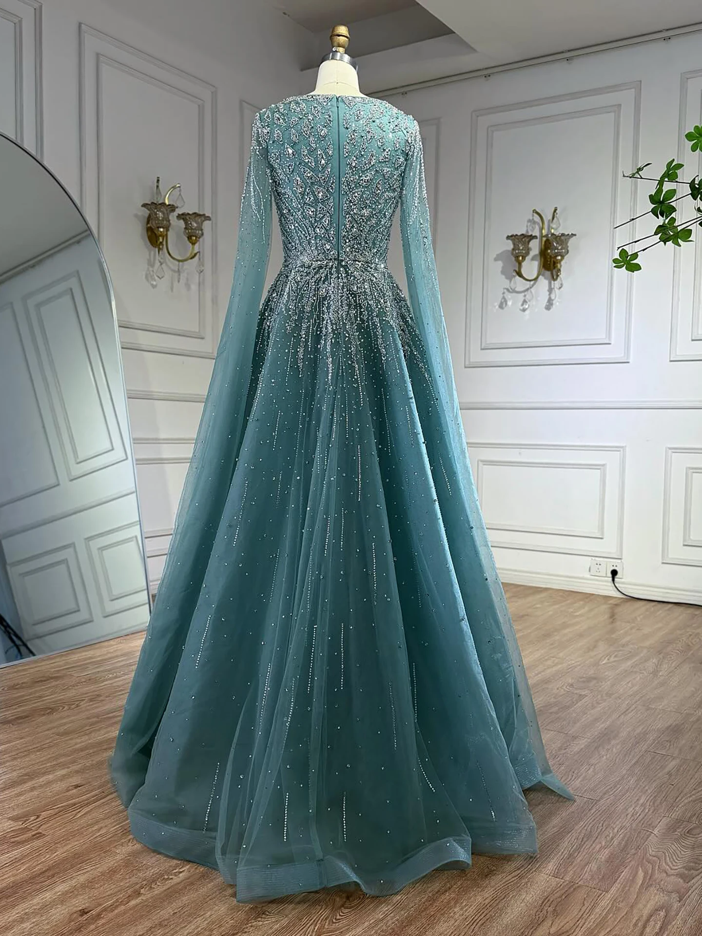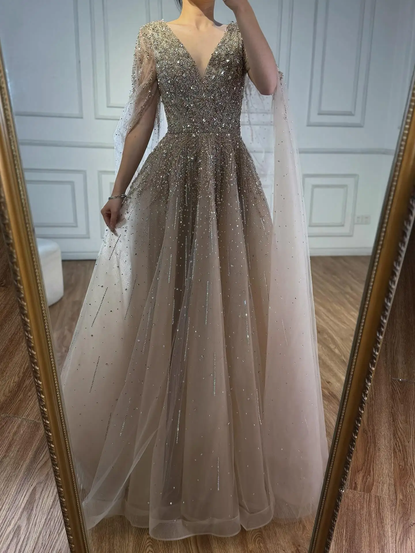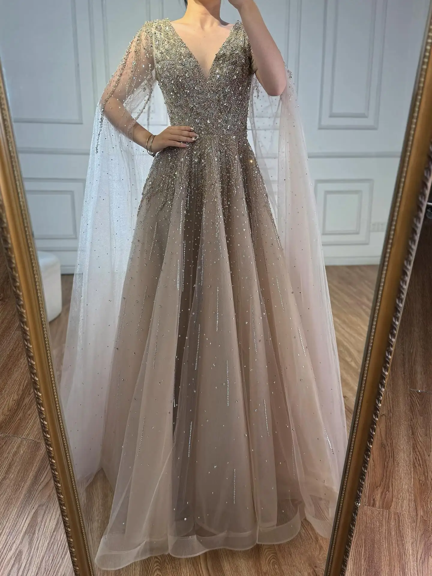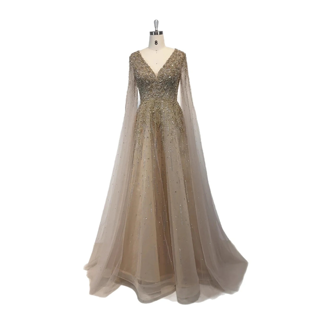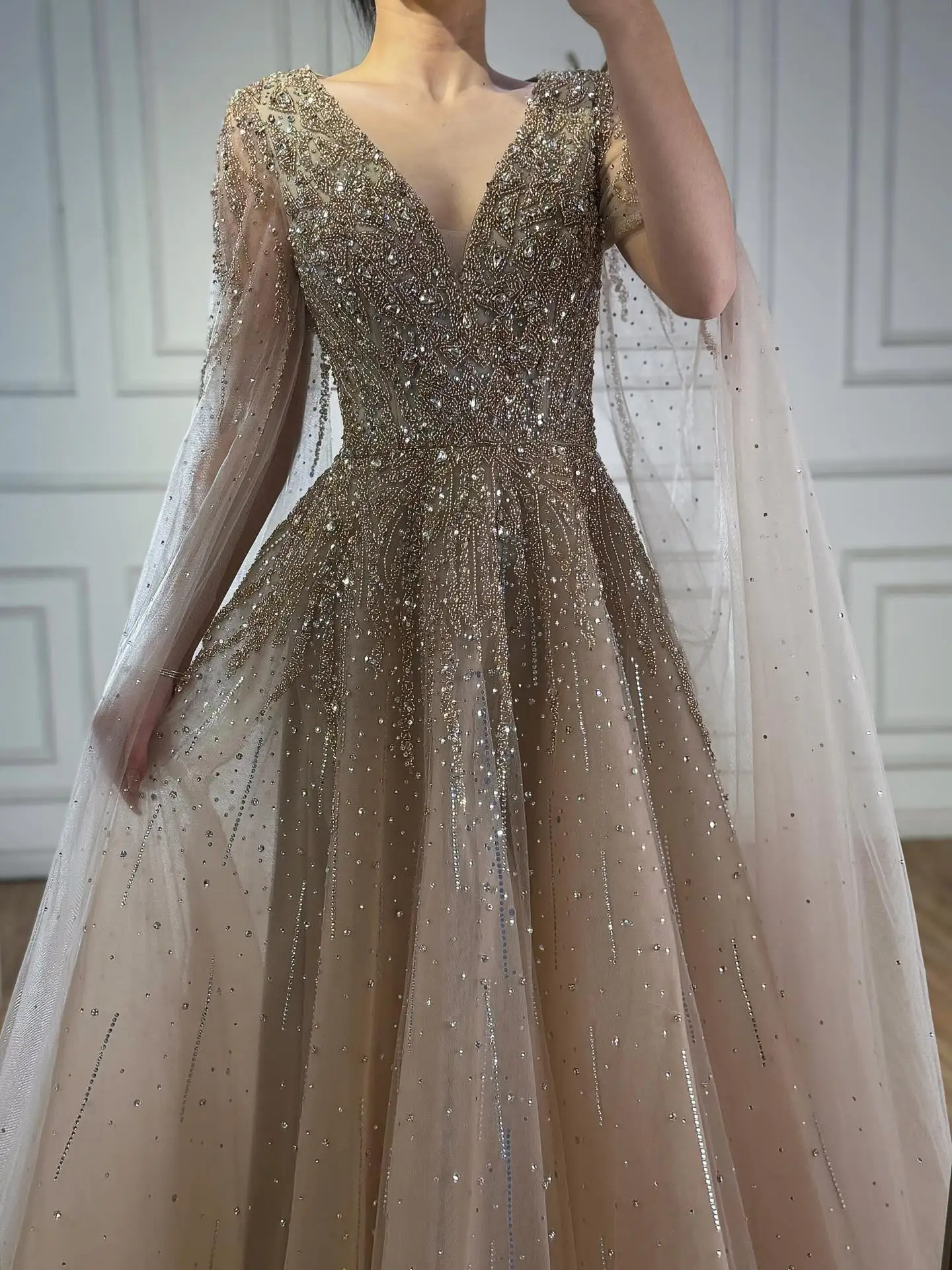 Luxury Caramel Dubai Evening Dress with Cape LA73269