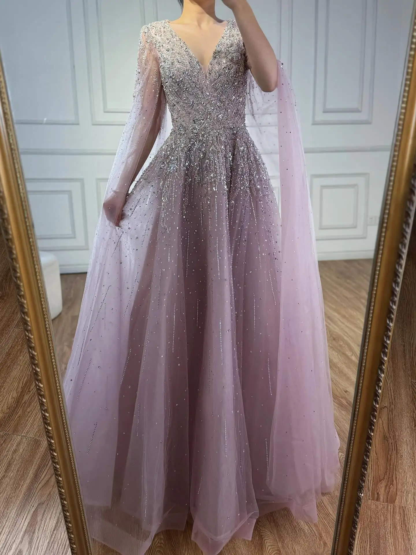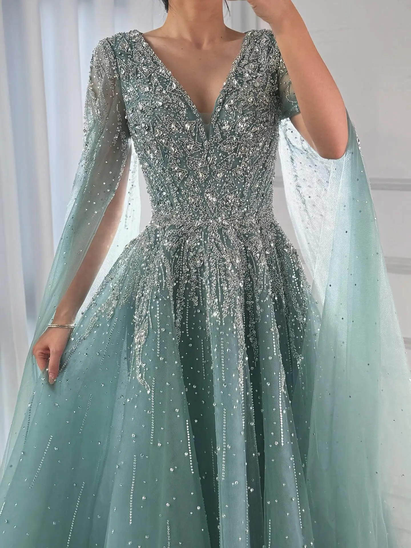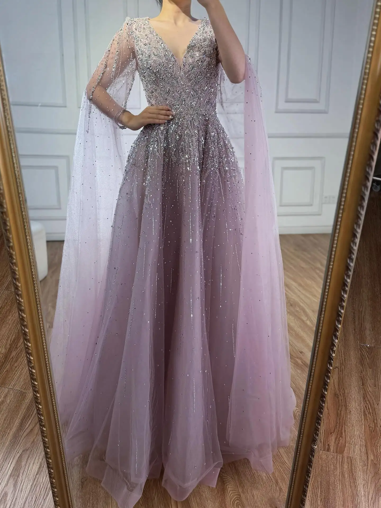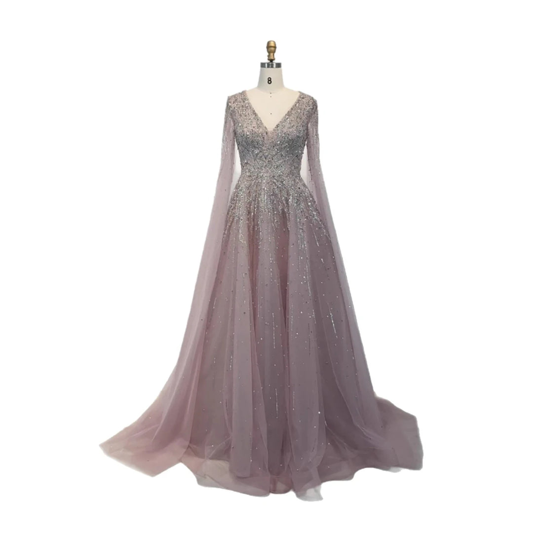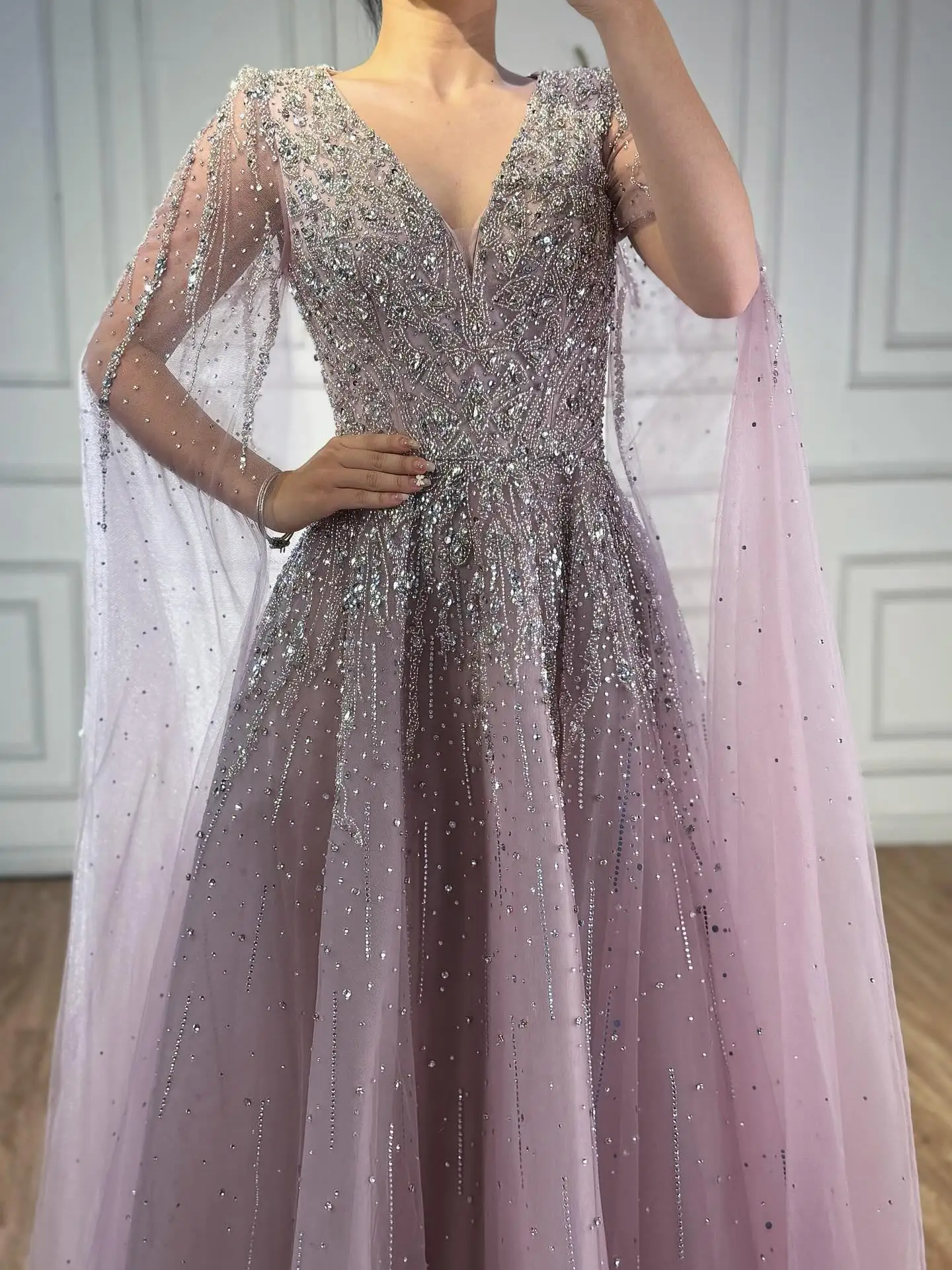 Luxury Caramel Dubai Evening Dress with Cape LA73269