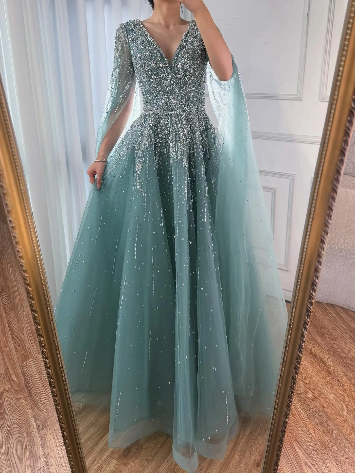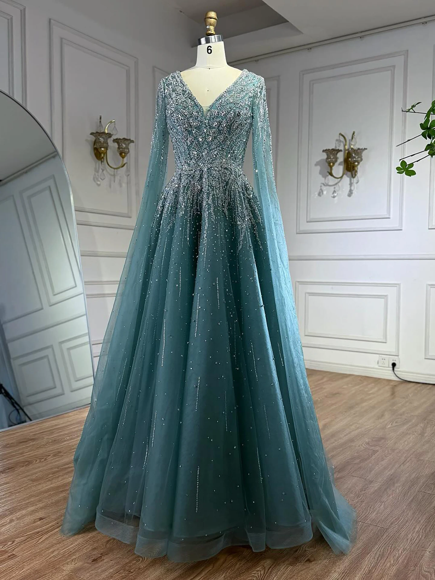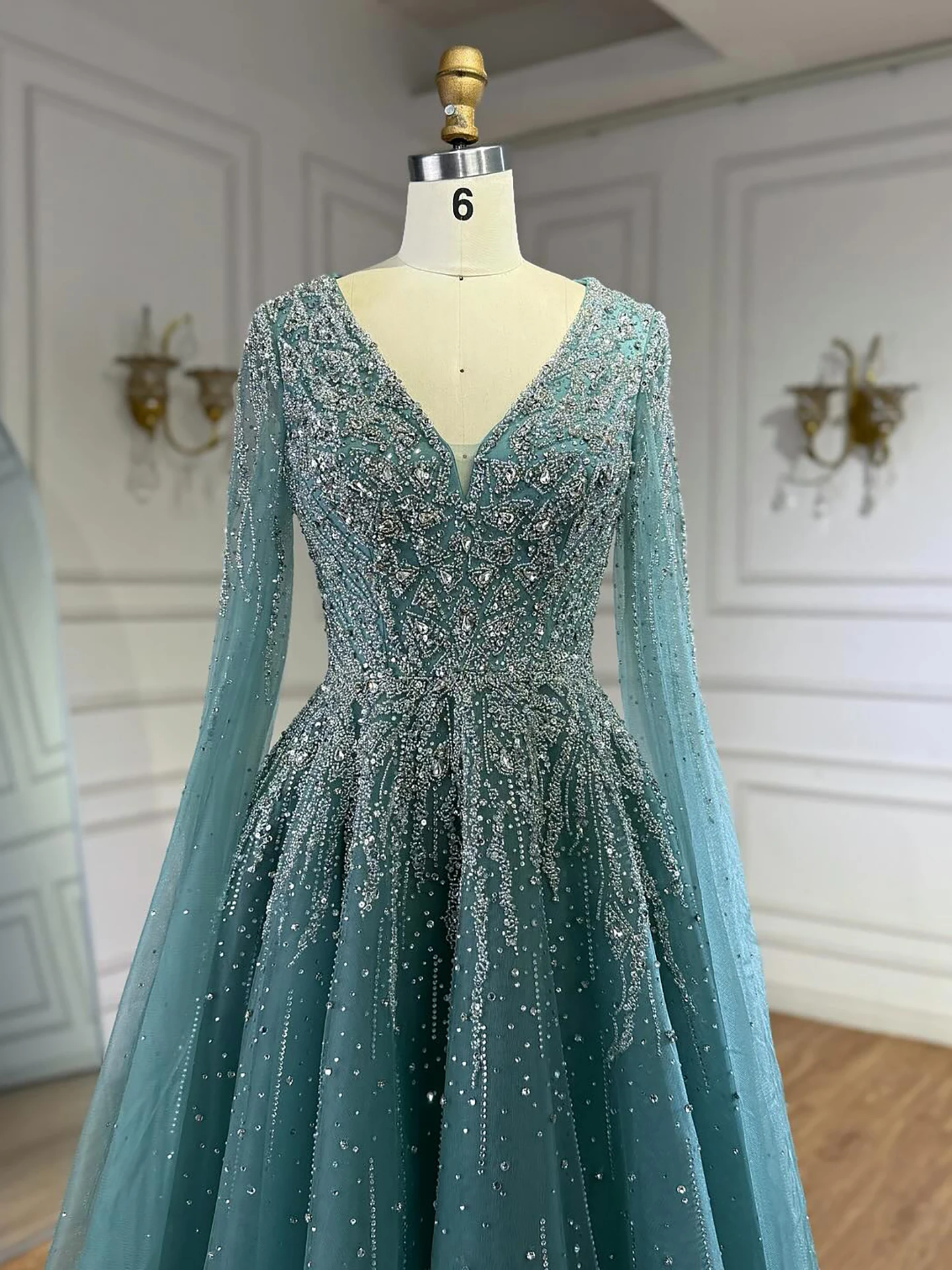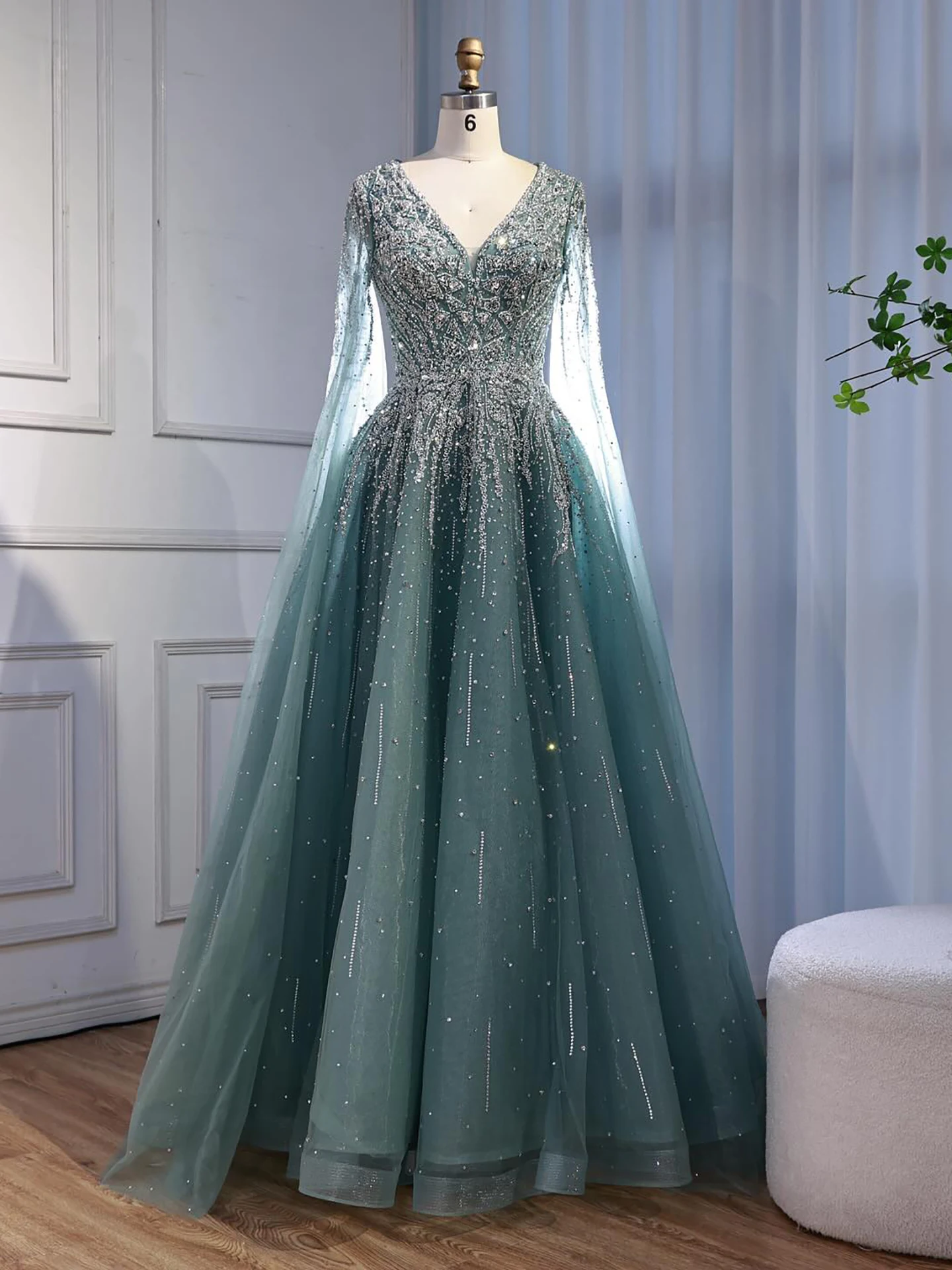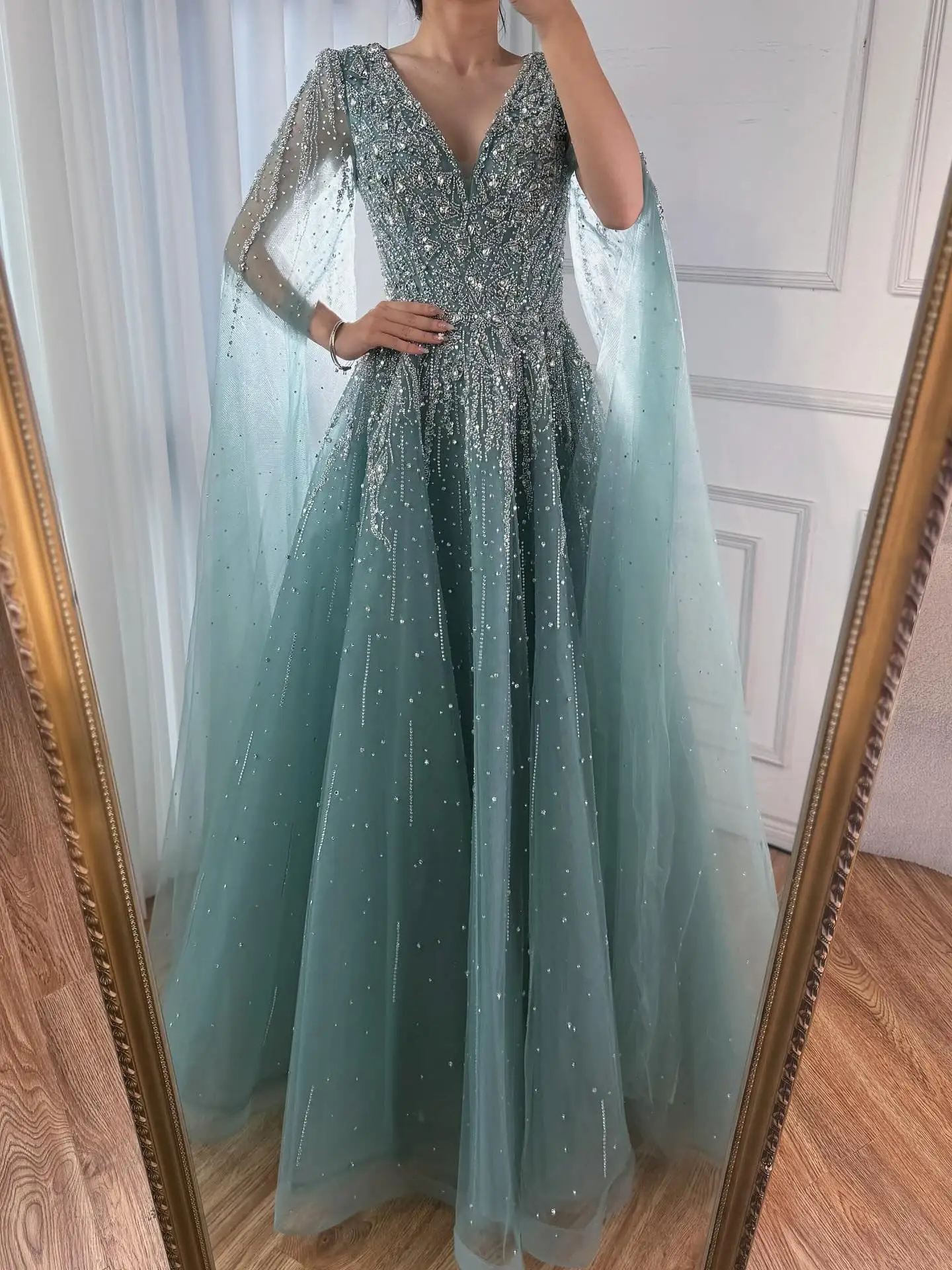 Luxury Caramel Dubai Evening Dress with Cape LA73269