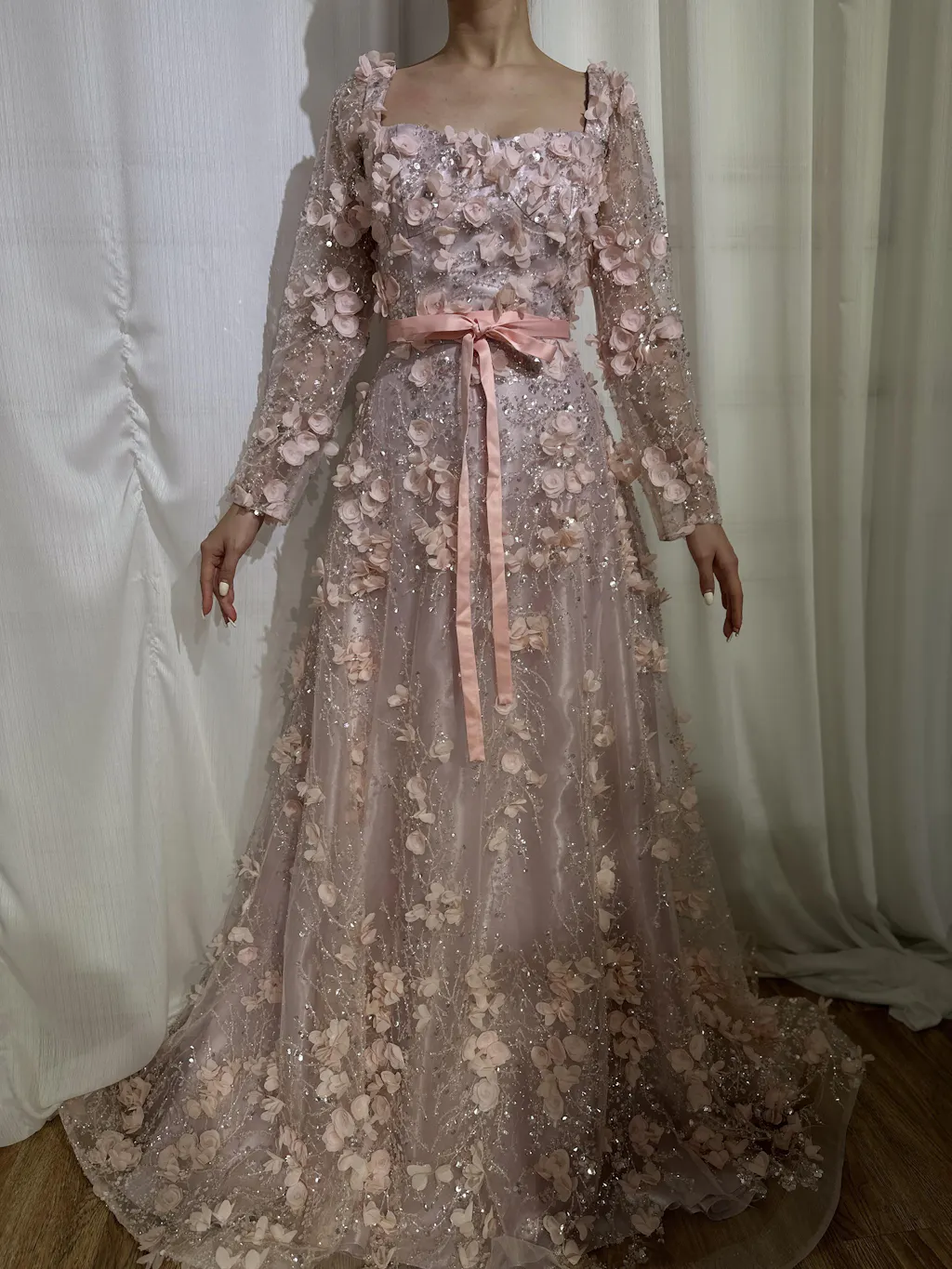 this is our designer try on the dress by herself. real dress much more beautiful