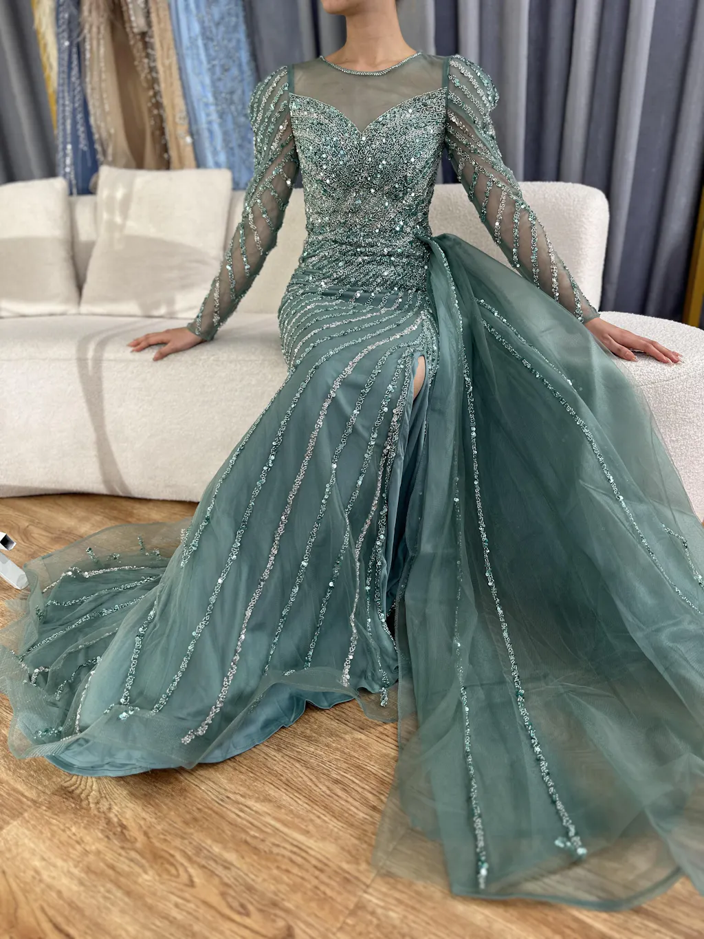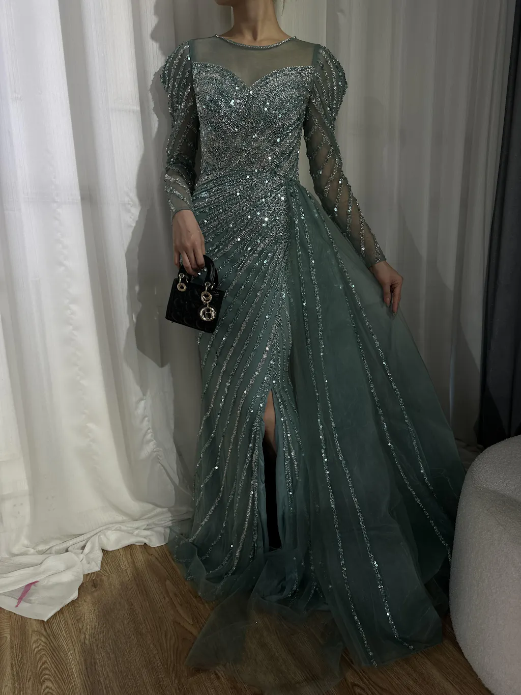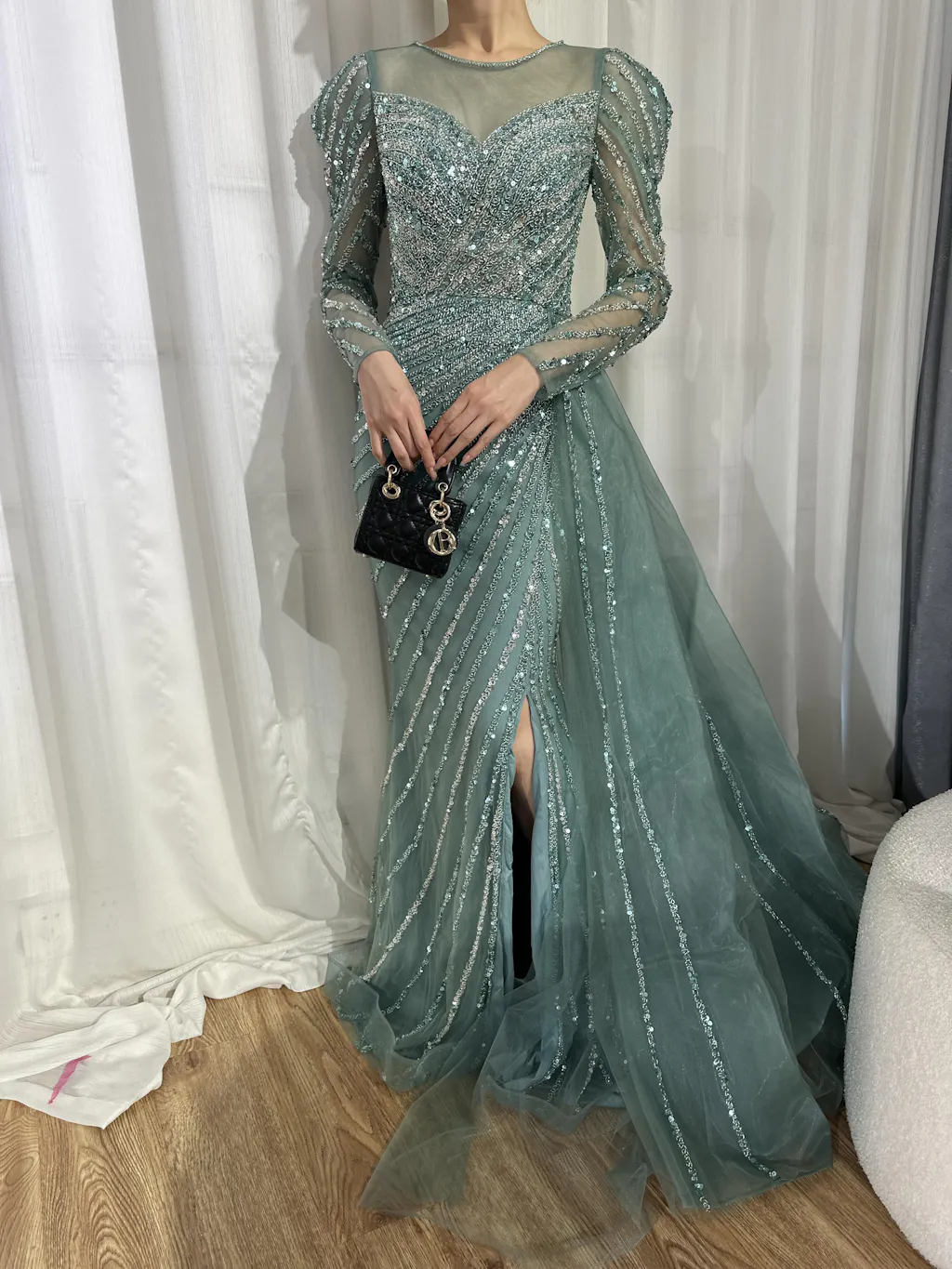 this is our designer try on the dress by herself. real dress much more beautiful