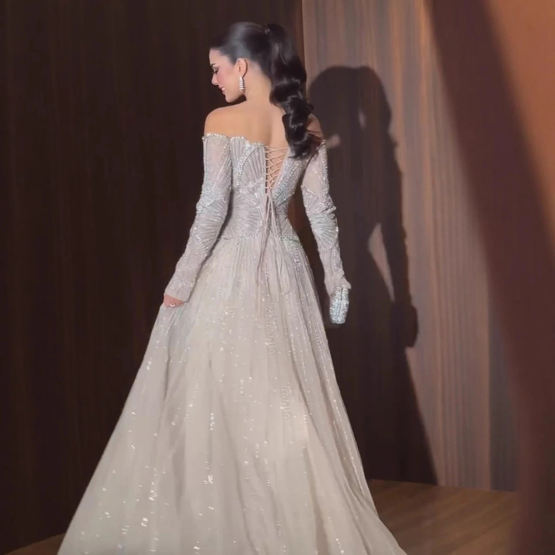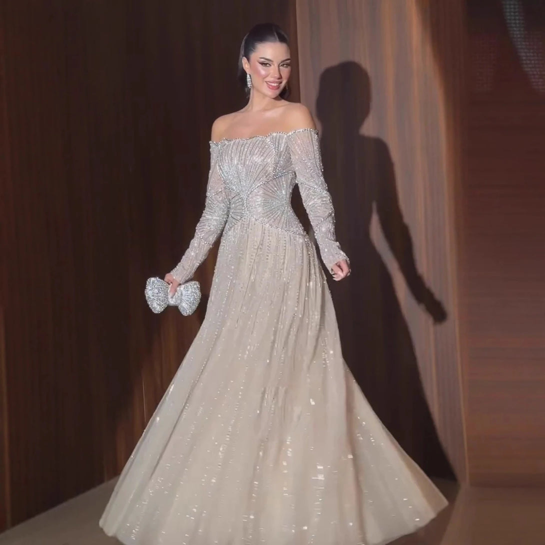 Luxury Beige Arabic A-Line Evening Dress 2026 For Wedding Party LA73333