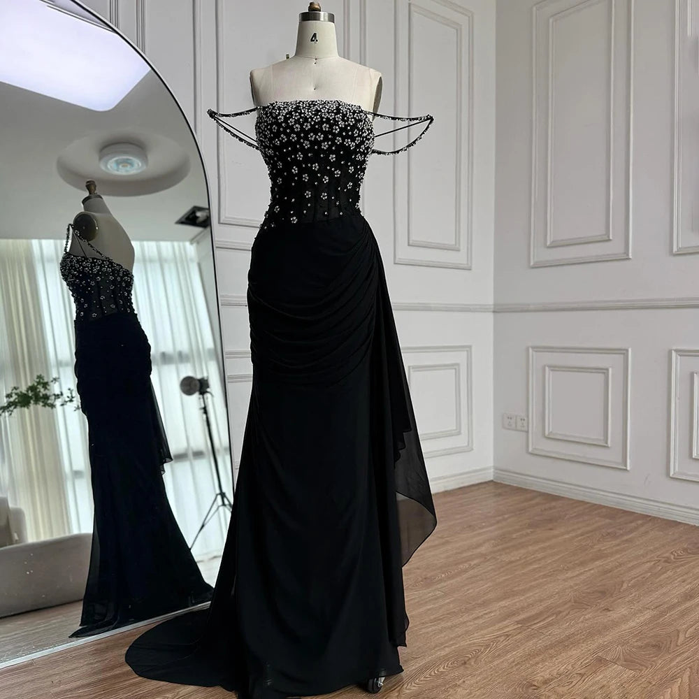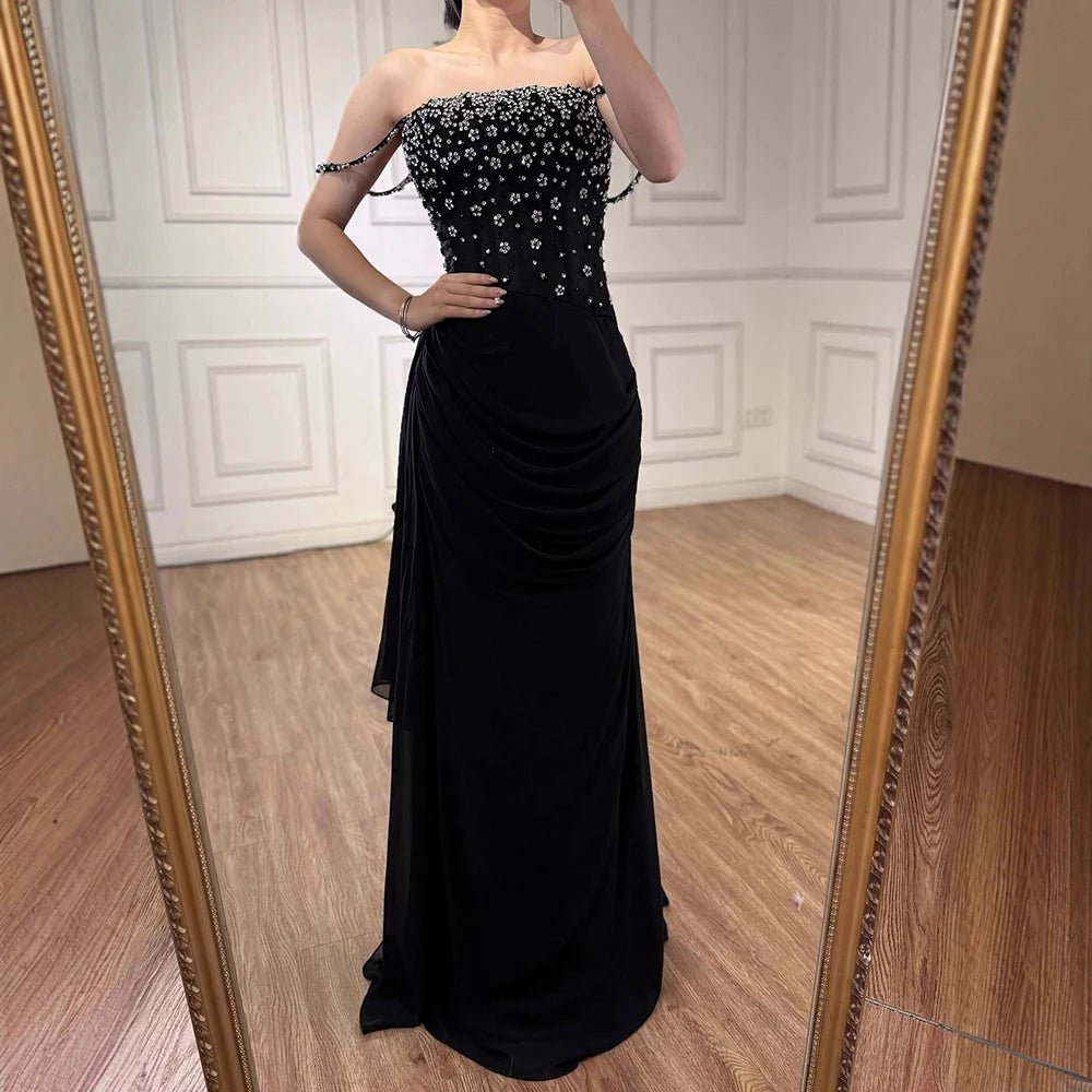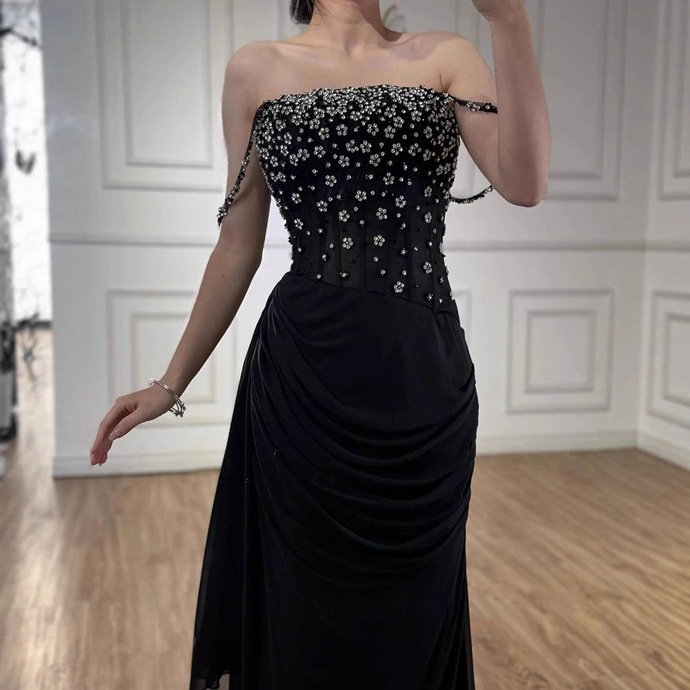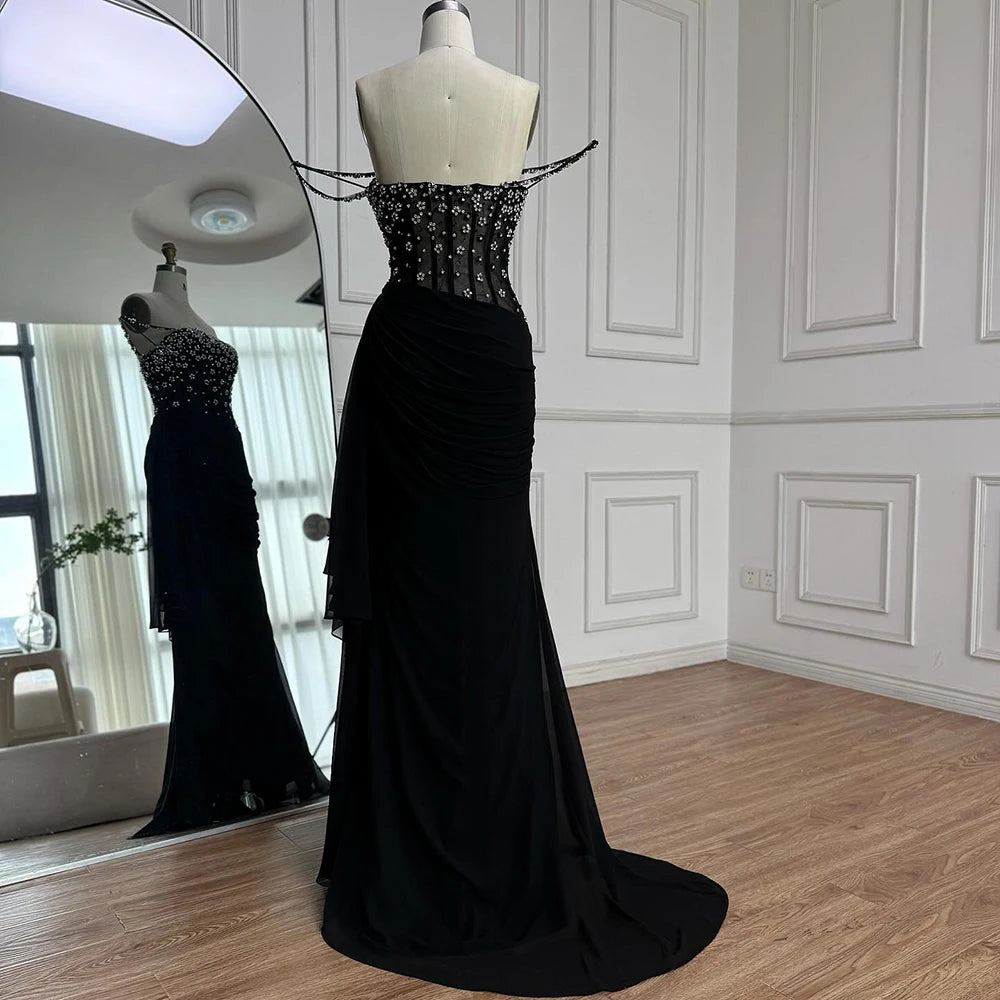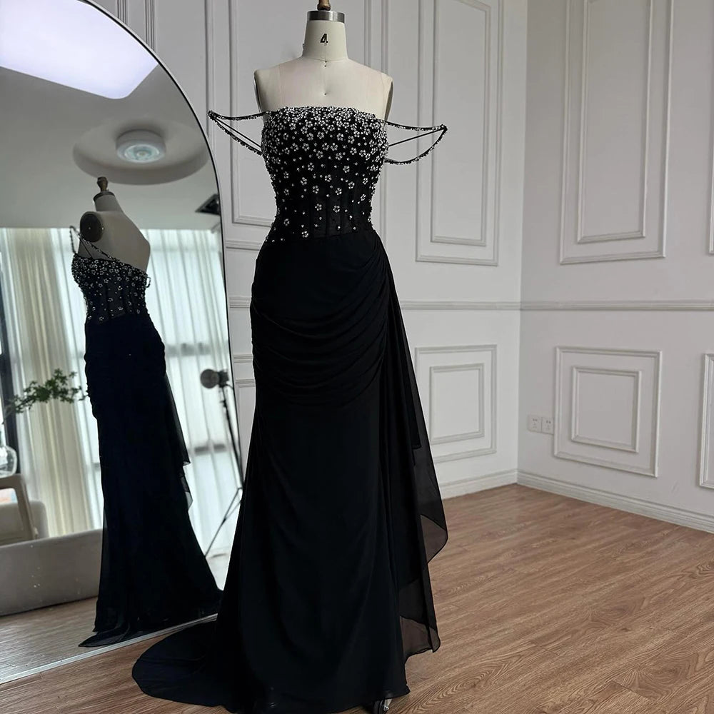 Luxury Black Beaded Mermaid Prom Dress with Spaghetti Straps LA73047