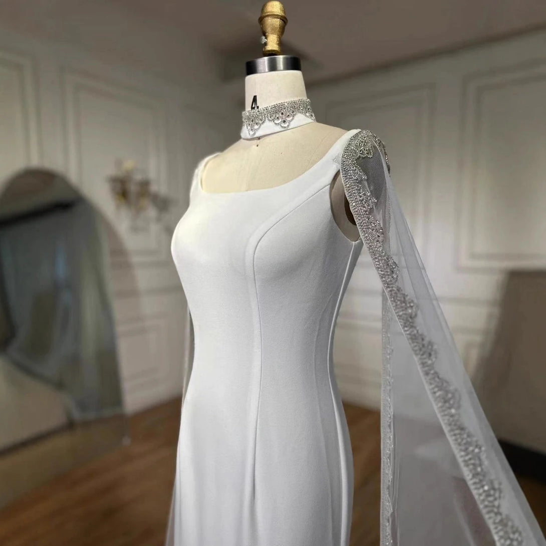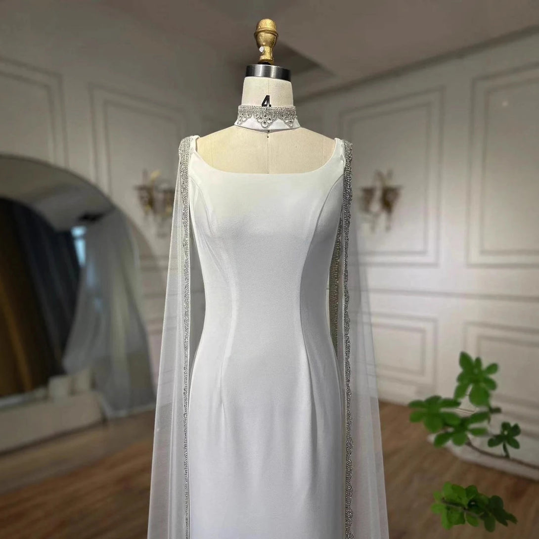 Luxury Blue Mermaid Beaded Evening Dress with Cape Sleeves LA72086