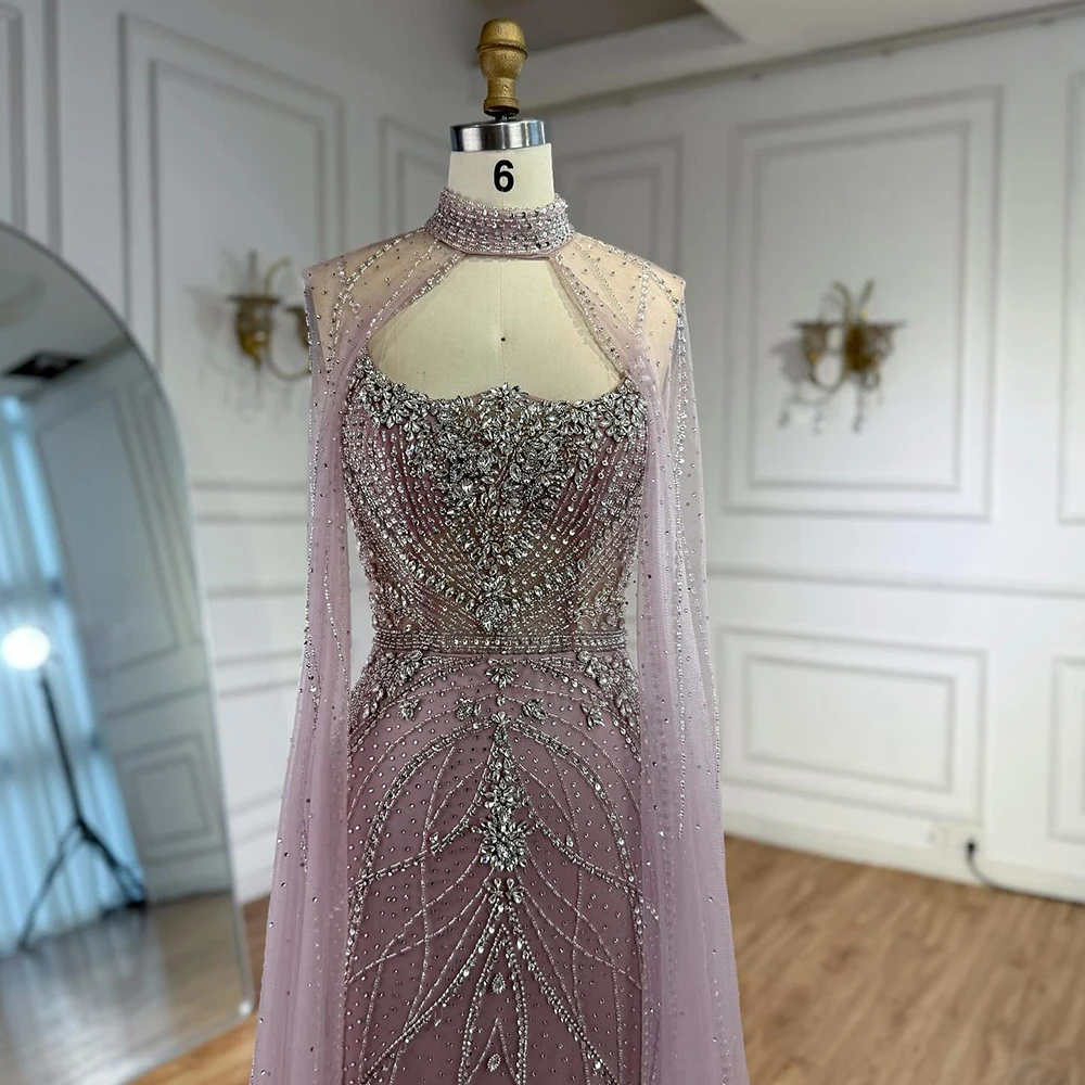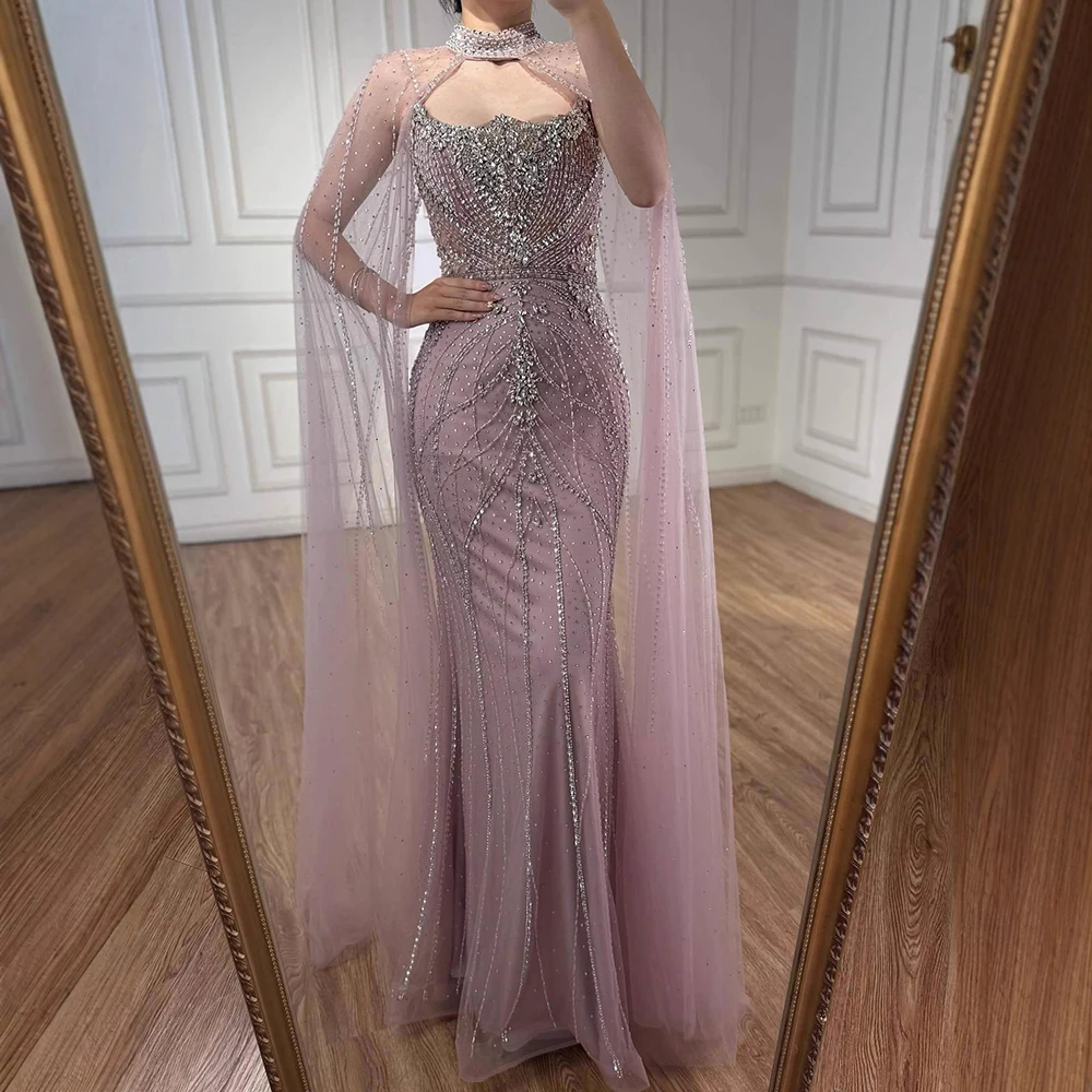 Luxury Dubai Nude Mermaid Evening Dress with Cape Sleeves LA73195