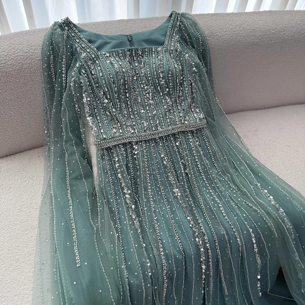 Luxury Dubai Square Neck Beaded Evening Gown with Cape LA73188