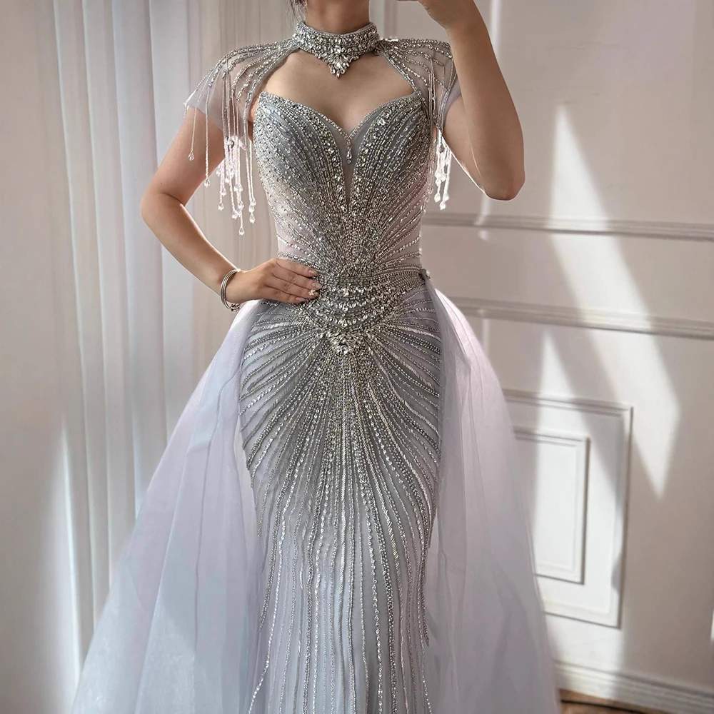 Luxury Nude Beaded Mermaid Evening Dress with Overskirt LA73182