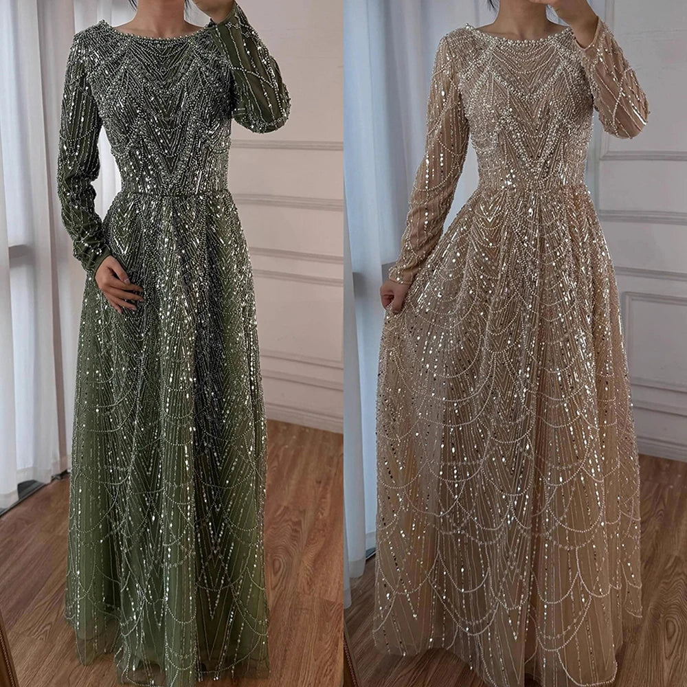 Elegant 2025 Serene Hill Luxury Olive Green Beaded A-Line Modest Evening Dress, Perfect for Women Party or Formal Occasion, Plus Size LA72738B