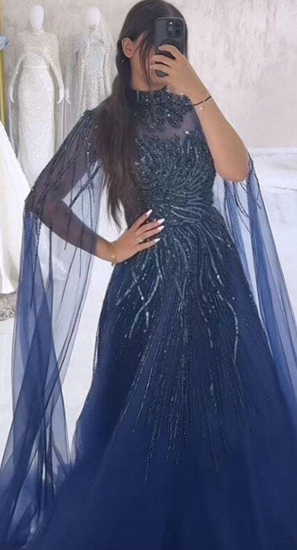 Serene Hill Caramel Luxury Evening Dresses with Cape Sleeves A-Line Beaded Lace Gown For Women's Wedding Party 2025 LA72386