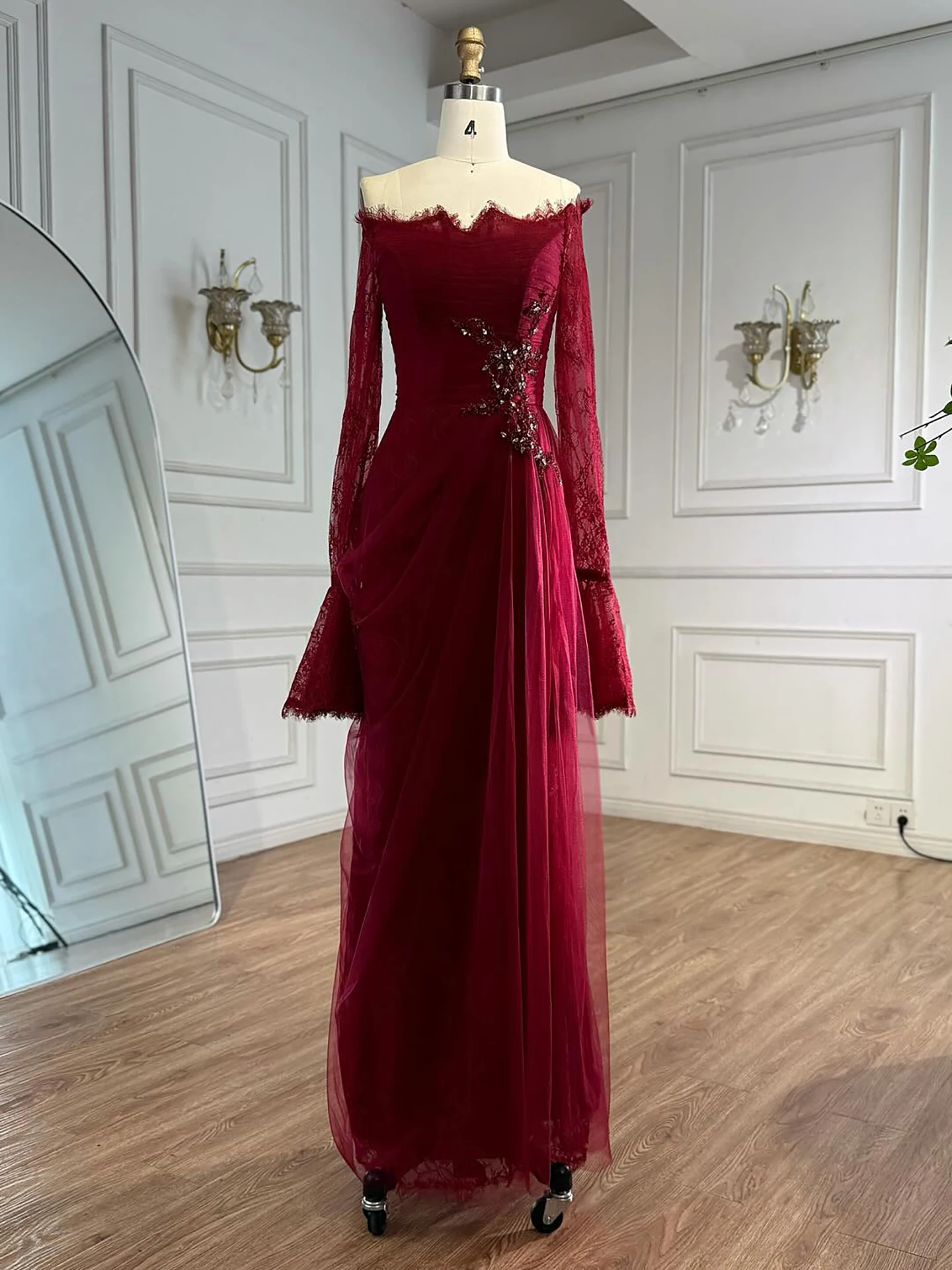 This Arabic light pink mermaid evening dress features luxury lace with exquisite beading, creating a refined and glamorous look. Perfect for women attending weddings, formal parties, or red-carpet occasions. Model: LA72910.