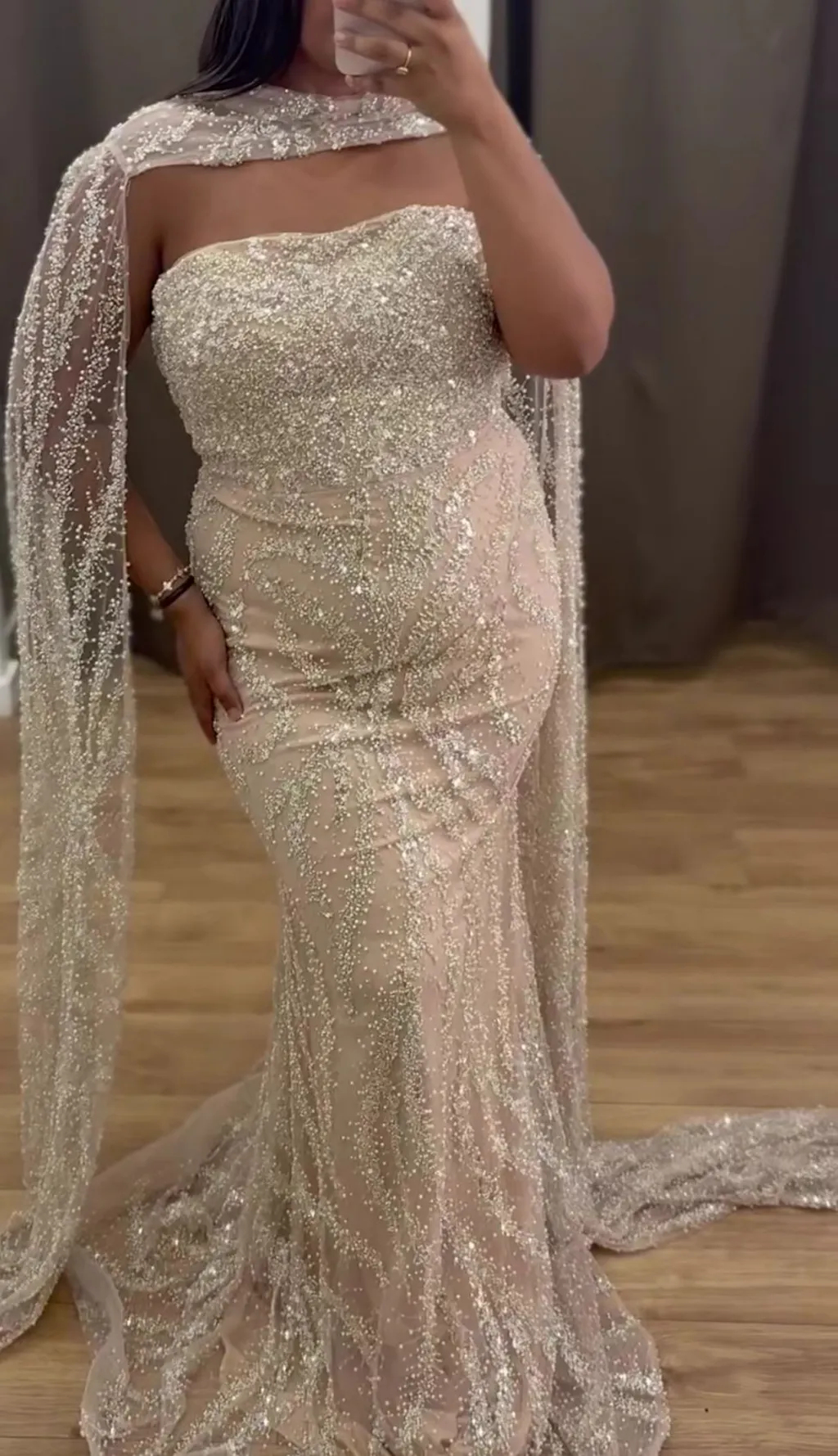 Luxury Nude Beaded Evening Dress with Cape Sleeves LA72824 Luxury Nude Beaded Evening Dress with Cape Sleeves LA72824