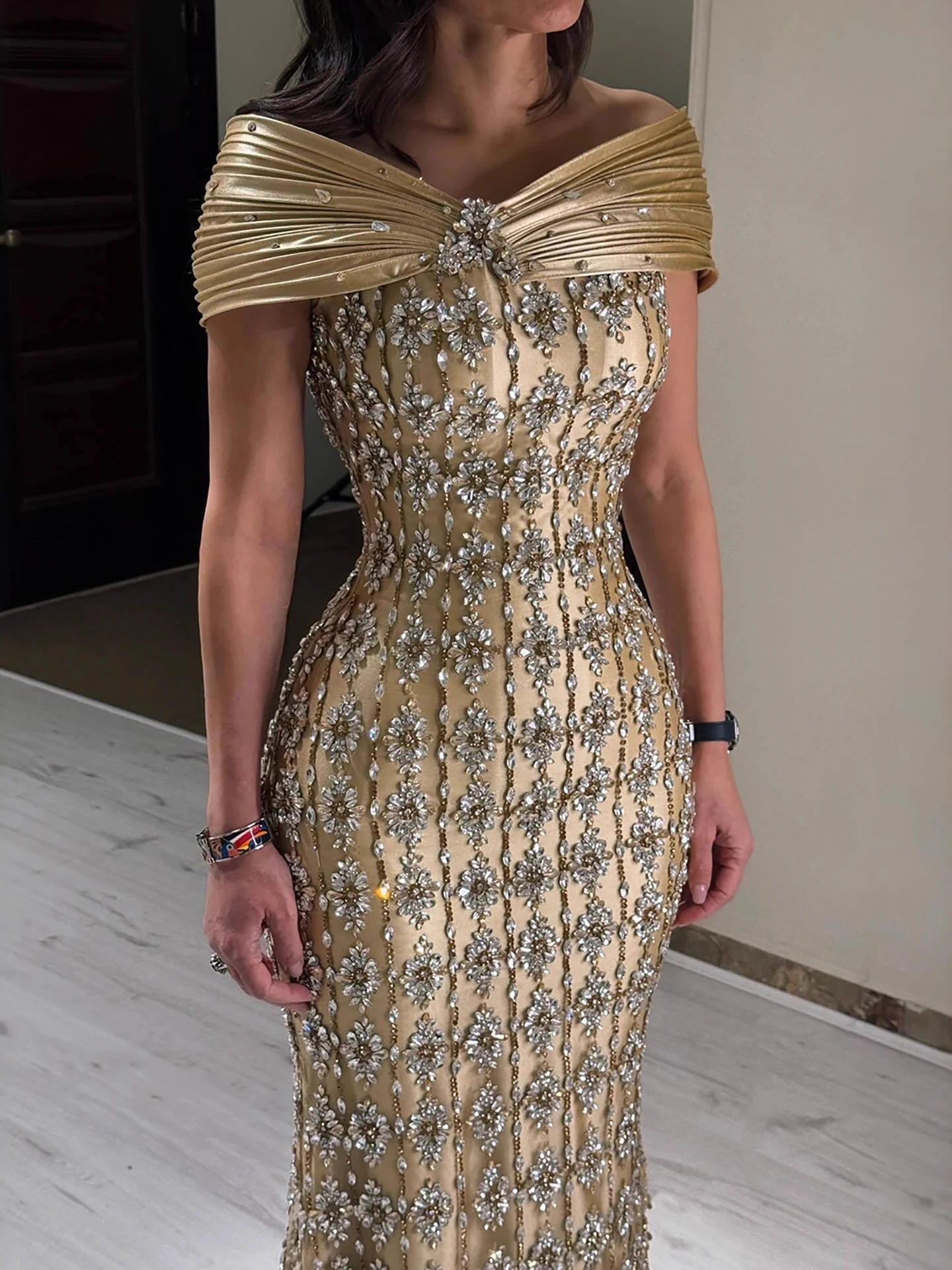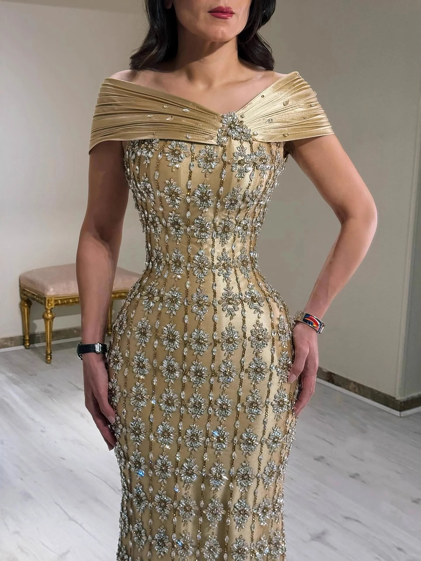 Luxury Gold Arabic Ruffles Evening Dress LA73362
