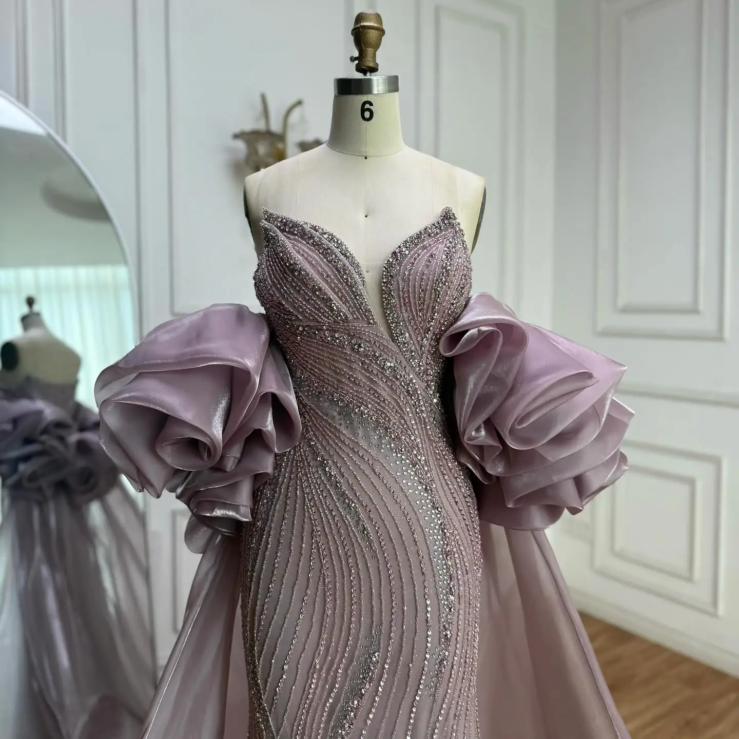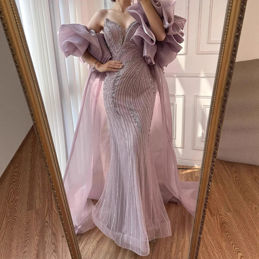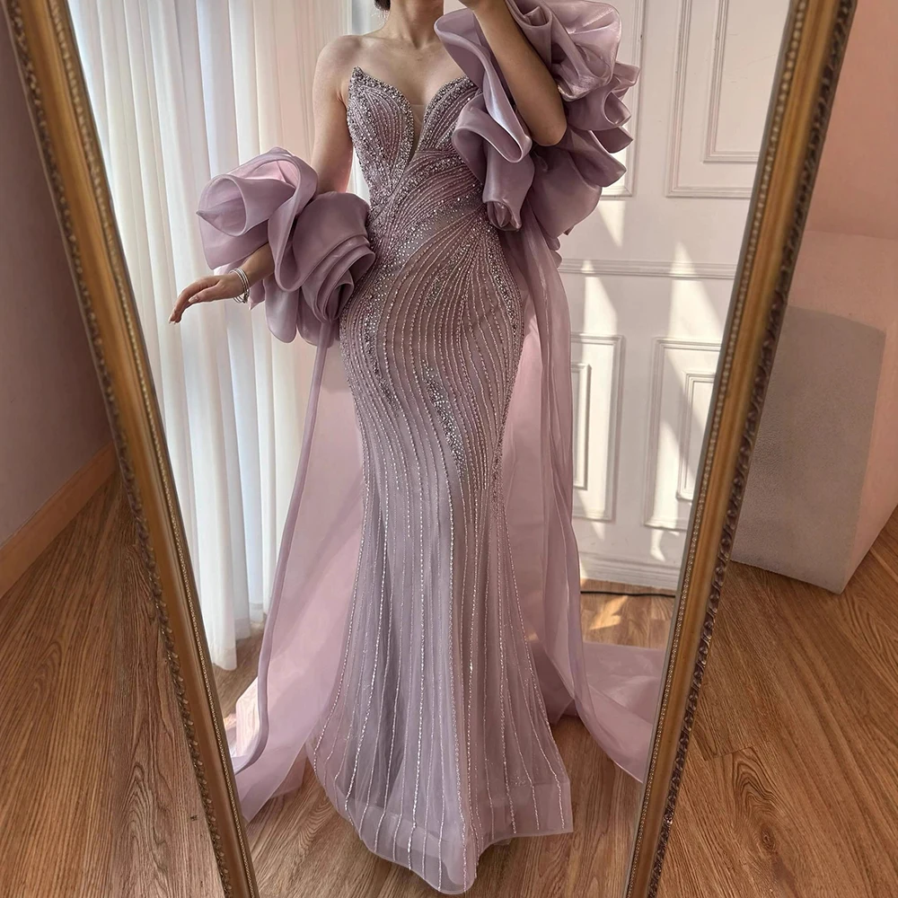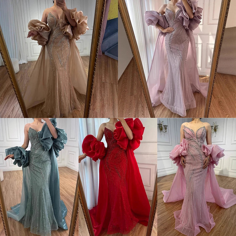Luxury Designer Red Beaded Mermaid Evening Dress with Cape LA72896