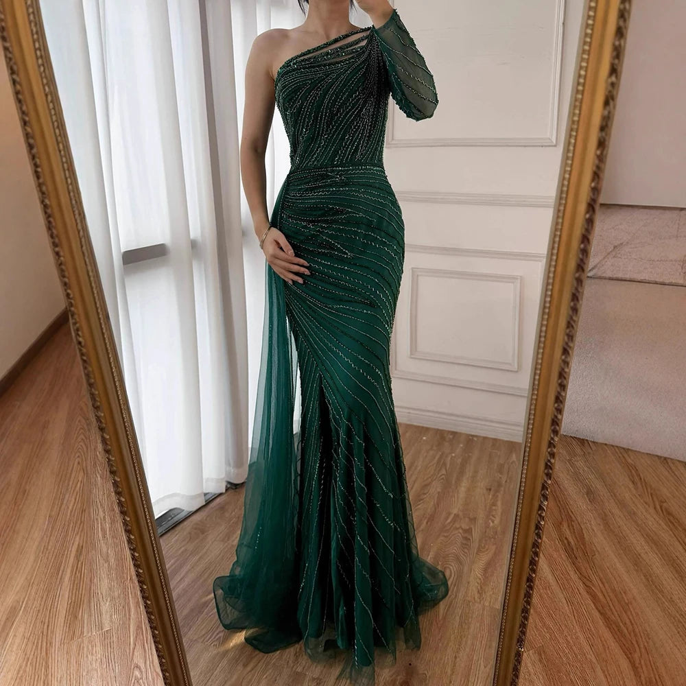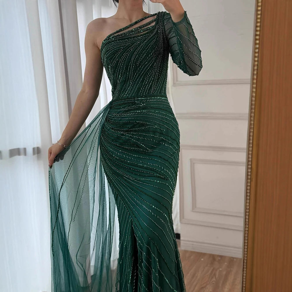 On Sale no return no refund Serene Hill Green One Shoulder Mermaid Split Open Evening Dresses Beaded Sexy Party Gowns 2025 For Women LA72046